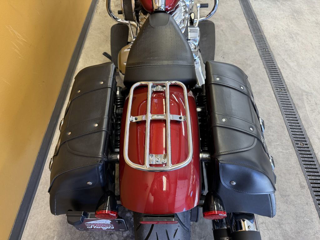 Premium chrome finishes, fork covers, wire wheels, and large headlight nacelle, and iconic Indian Motorcycle script badging on the tank.