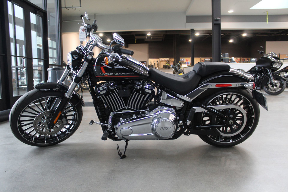 Dripping with chrome, the Harley-Davidson Breakout 117 is a raked-out cruiser that packs Milwaukee-Eight™?117 V-Twin muscle.