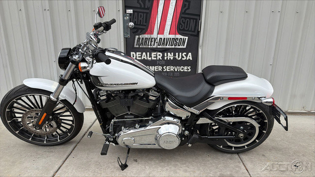 2024 Harley-Davidson® Breakout®WAKE UP YOUR SENSES WHILE STEALING GLANCES.Features may include:MILWAUKEE-EIGHT® 117 ENGINEThis air- and oil-cooled engine is the pinnacle of torque and displacement in factory-installed, regular-production Harley-Davidson powertrain.HEAVY BREATHERHigh-performance Heavy Breather intake with forward-facing exposed filter element flows more air into the engine.CHROME APPEALPolished chrome adorns everything from the fender supports, side covers, and muffler shields, to the turn signals, mirrors, and Heavy Breather intake.WHEELSThe 21-inch front and 18-inch rear cast aluminum wheels have 26 spokes with black finishes and machined details.TWO-INTO-TWO EXHAUSTHigh-performance, offset shotgun exhaust improves mid-range torque and produces a strong, stirring note.CHASSISSoftail chassis reduces weight and improves rigidity while maintaining the classic look of a hard tail.