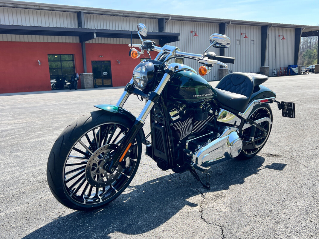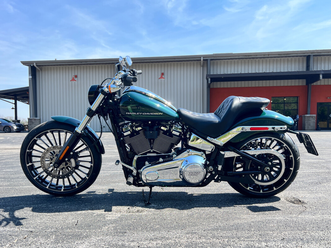 Dripping with chrome, the Harley-Davidson Breakout 117 is a raked-out cruiser that packs Milwaukee-Eight 117 V-Twin muscle.