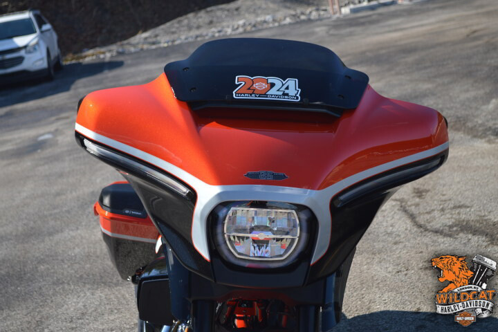 New 2024 Harley-Davidson CVO Street Glide FLHXSE Motorcycle For Sale Near Lexington, KY This New 2024 Harley-Davidson CVO Street Glide FLHXSE Motorcycle is for sale at Wildcat Harley-Davidson located in London, Kentucky. Reach out to Wildcat Harley-Davidson today for more information, CONTACT US. If this isn't the exact Harley-Davidson Motorcycle you're looking for don't hesitate to go back and REVISE YOUR SEARCH. We're sure to have the perfect choice for you in our showroom in Kentucky. Visit Wildcat Harley-Davidson, Kentucky’s premier Harley-Davidson dealership. Wildcat Harley-Davidson Address: 575 Hal Rogers Pkwy, London, KY 40741 Phone: (606) 862-5656 2024 Harley-Davidson CVO Street Glide FLHXSE Features may include: BATWING FAIRING The iconic batwing fairing takes on new life with a sculpted silhouette, fully integrated LED lighting, and a split-stream vent opening. Meticulously designed using computational fluid dynamics (CFD), the CVO Street Glide design optimizes aero performance and rider comfort with a striking new take on the original. SIGNATURE LED LIGHTING Seamlessly integrated, the full LED lighting package optimizes visibility, integrates turn signals, and accentuates the lines of the batwing fairing, creating a distinctive look that’s instantly recognizable, day or night. WHEELS The CVO Street Glide is fitted with 19-inch front and 18-inch rear, Combo Cast Laced wheels equipped with Tire Pressure Monitoring System (TPMS). FLOW STATE Sculpted using wind tunnel data analysis, every surface of the CVO Street Glide has been reimagined and refined, creating a seamless visual flow from the tip of the front fender to the tail of the saddlebags. SADDLEBAGS A final extension of the aggressive lines and athletic build of the fairing and fuel tank, the saddlebags increase overall luggage capacity and complete the aggressive stance of the CVO Street Glide. 25TH ANNIVERSARY PAINT & FINISHES Available in color-shifting Copperhead with Warm-Shift pinstripes or Legendary Orange with Raven Metallic and Atlas Silver brushed sections. Each option is finished with color-matched parts and accessories, CVO graphics, and an engraved CVO 25th Anniversary console insert. MILWAUKEE-EIGHT VVT 121 V-TWIN ENGINE The highest displacement powertrain ever to be factory installed on a Harley-Davidson Touring motorcycle, the Milwaukee-Eight VVT 121 engine features liquid-cooled cylinder heads, variable valve timing (VVT), and a new intake tract. The increased displacement produces more power and torque than the Milwaukee-Eight 117 engine, while VVT broadens the overall powerband and improves fuel economy. BRAKES Dual front disc brakes with radially mounted four-piston Brembo calipers in the front and a single four-piston Brembo caliper in the rear enhance feel and overall braking performance.