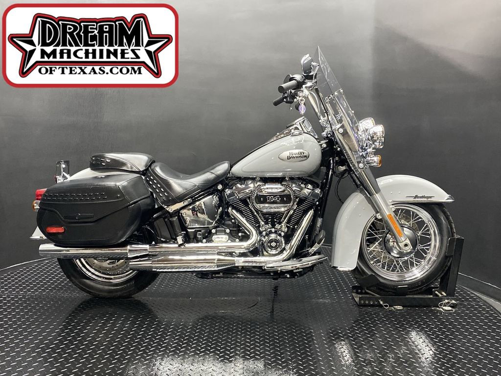 YOU ARE LOOKING AT A 2024 HARLEY DAVIDSON HERITAGE CLASSIC (FLHCS) WITH ONLY 107 MILES ON IT. IT IS BILLIARD GRAY IN COLOR AND POWERED BY A 1868CC (114") FUEL INJECTED MILWAUKEE EIGHT ENGINE AND 6 SPEED TRANSMISSION. THE BIKE COMES WITH ABS BRAKES, CRUISE CONTROL, 2 KEYS, 1 FOB, AND FACTORY SECURITY SYSTEM. THERE ARE NO SCRATCHES, DENTS, OR DINGS THAT I CAN FIND WITH THE EXCEPTION OF SCUFFS ON THE WINDSHIELD. THE CHROME AND ALUMINUM ARE IN GOOD CONDITION. THE TIRES HAVE GOOD TREAD LEFT ON THEM.