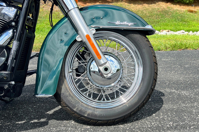 2024 Harley-Davidson® Heritage ClassicALWAYS IN STYLE.Features may include:MILWAUKEE-EIGHT® 114 ENGINELoads of torque for on-demand power you can feel with each twist of the throttle, accompanied by that evocative H-D sound.HIGH-PERFORMANCE REAR MONO SHOCKEasily adjustable mono-shock rear suspension allows for dynamic cornering capability while preserving the hardtail look.DETACHABLE WINDSCREENGo from touring to cruising in a heartbeat; leave the screen on for long hauls or remove it in seconds for a completely different look and ride.LOCKABLE SEALED SADDLEBAGSSleek and roomy, with enough space to stash your riding essentials.