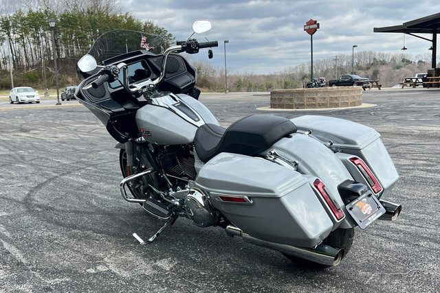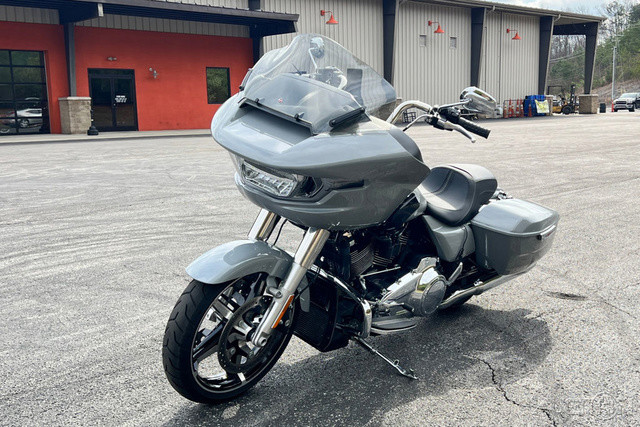 2024 Harley-Davidson® Road Glide®Features may include:SHARKNOSE FAIRINGThe sharknose fairing takes on new life with a sculpted silhouette, fully integrated LED lighting, and a new windshield design. Designed using computational fluid dynamics (CFD) to improve aerodynamic efficiency, the Road Glide fairing optimizes on-road performance and rider comfort with an aggressive new take on the original frame-mounted fairing.SIGNATURE LED LIGHTINGSeamlessly integrated, the full LED lighting package improves visibility, integrates turn signals, and accentuates the lines of the sharknose fairing, creating a distinctive look that’s instantly recognizable, day or night.CONTRAST CUT WHEELSWrapped in Dunlop tires, the 19-inch front and 18-inch rear cast-aluminum wheels feature a black finish with machine cut highlights that reveal contrasting bright aluminum.FLOW STATEEvery surface of the Road Glide has been reimagined and refined, creating a seamless visual flow from the tip of the front fender to the tail of the saddlebags.