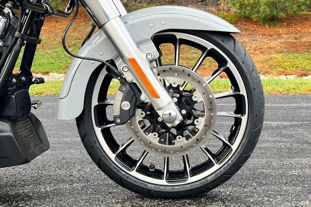 2024 Harley-Davidson® Road Glide® 3KEEP YOUR FEET UP.Features may include:MILWAUKEE-EIGHT® 114 ENGINELoads of torque for on-demand power you can feel with each twist of the throttle, accompanied by that evocative H-D sound.FAIRINGThe frame-mounted sharknose fairing features triple split-stream vents that reduce helmet buffeting at highway speeds.WEATHER-PROOF STORAGECarry more on every journey with a rear trunk, which has a top-mounted door for easy loading and unloading.INFOTAINMENT SYSTEMAn evolved interface experience that offers a contemporary look, feel, and function, with exceptional durability and features designed specifically for motorcycling.GLOSS BLACK WHEELSBig, bold, and beautiful 19-inch front wheel and 18-inch rear wheel.