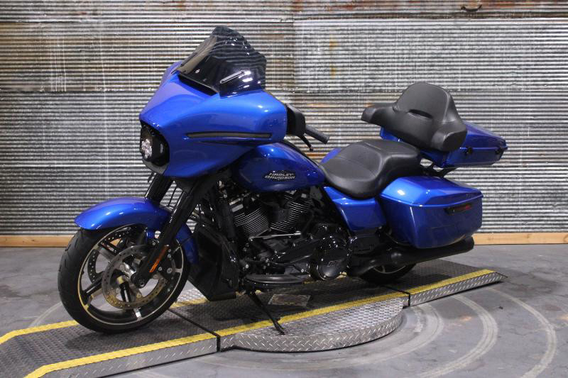 The 2024 Harley-Davidson Street Glide Touring in a striking Blue Burst color exudes style and power, making it an iconic choice for motorcycle enthusiasts. This used motorcycle, with only 1,848 miles on its odometer, is maintained in excellent condition and is ready to provide thrilling rides for its next owner.