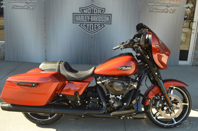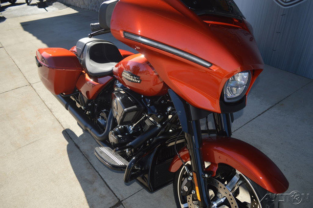 2024 Harley-Davidson® Street Glide®A NEW ERA OF ENDLESS ADVENTURESFeatures may include:BATWING FAIRINGThe iconic batwing fairing takes on new life with a sculpted silhouette, fully integrated LED lighting, and a split-stream vent opening. Using computational fluid dynamics (CFD), the Street Glide fairing has been designed to optimize aerodynamic efficiency and enhance rider comfort.SIGNATURE LED LIGHTINGSeamlessly integrated, the full LED lighting package increases visibility, integrates turn signals, and accentuates the lines of the batwing fairing, creating a distinctive look that is instantly recognizable, day or night.CONTRAST CUT WHEELSWrapped in Dunlop tires, the 19-inch front and 18-inch rear cast-aluminum wheels feature a black finish with machine cut highlights that reveal contrasting bright aluminum.FLOW STATEEvery surface of the Street Glide has been reimagined and refined, creating a seamless visual flow from the tip of the front fender to the tail of the saddlebags.