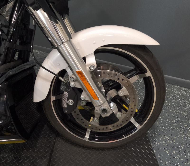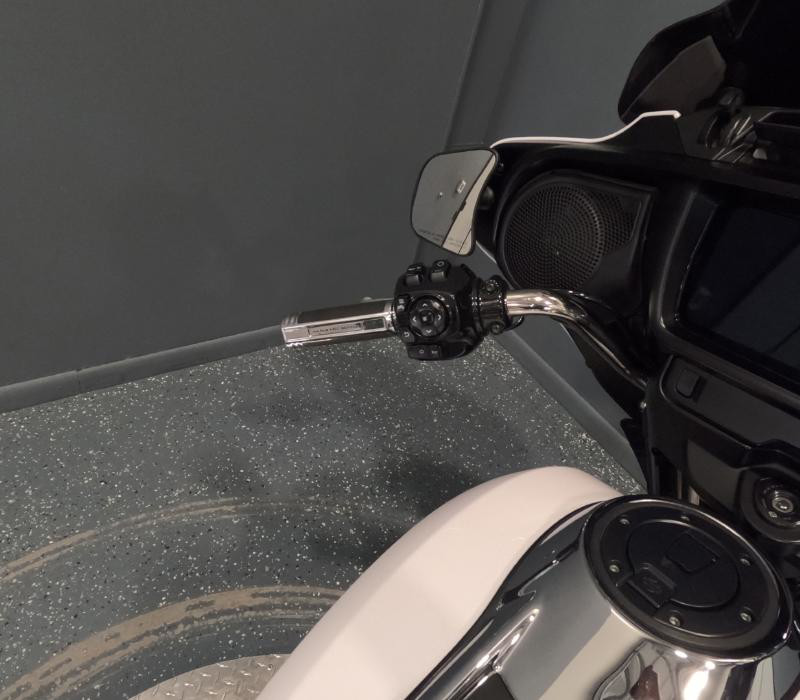 With an odometer reading of 3,673 miles, this bike shows light usage and remaining life for many adventures ahead. The White Onyx Pearl exterior gleams, offering a striking look that stands out in any lineup. For added security, it’s equipped with an integrated security system to help deter theft when parked.