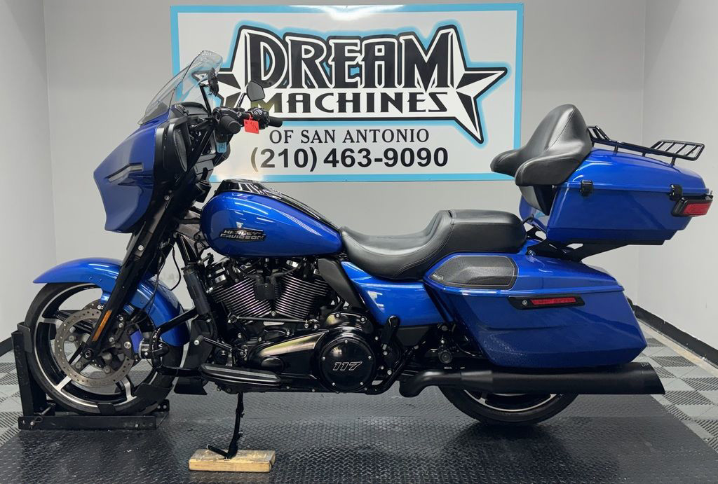 *BOOK VALUE IS $23,705 SHIPPING, LEASING, FINANCING AND EXTENDED WARRANTY MAY BE AVAILABLE! YOU ARE LOOKING AT A 2024 HARLEY DAVIDSON STREET GLIDE (FLHX) WITH 45,509 MILES ON IT. IT IS BLUE BURST IN COLOR AND POWERED BY A 1923CC (117") FUEL INJECTED MILWAUKEE EIGHT ENGINE AND 6 SPEED TRANSMISSION. THE BIKE COMES WITH ABS BRAKES, CRUISE CONTROL, NAVIGATION, 1 KEY, 1 FOB, AND FACTORY SECURITY SYSTEM. THERE ARE SOME EXTRAS ON THE BIKE WHICH INCLUDE KHROME WERKS SLIP-ON MUFFLERS ($949.95), TOUR TRUNK ($1,099.95), FOG LIGHTS ($409.95), APE HANGER BARS ($403.95), AND SADDLEBAG LID SPEAKERS ($899.95). THERE ARE NO DENTS OR DINGS THAT I CAN FIND. THERE ARE SCRATCHES ON THE FRONT FENDER, FRONT FAIRING, TANK, AND SADDLEBAGS. THE CHROME AND ALUMINUM ARE IN GOOD CONDITION WITH THE EXCEPTION OF ROCK CHIPS ON THE FORK LOWERS. THE TIRES HAVE GOOD TREAD LEFT ON THEM.