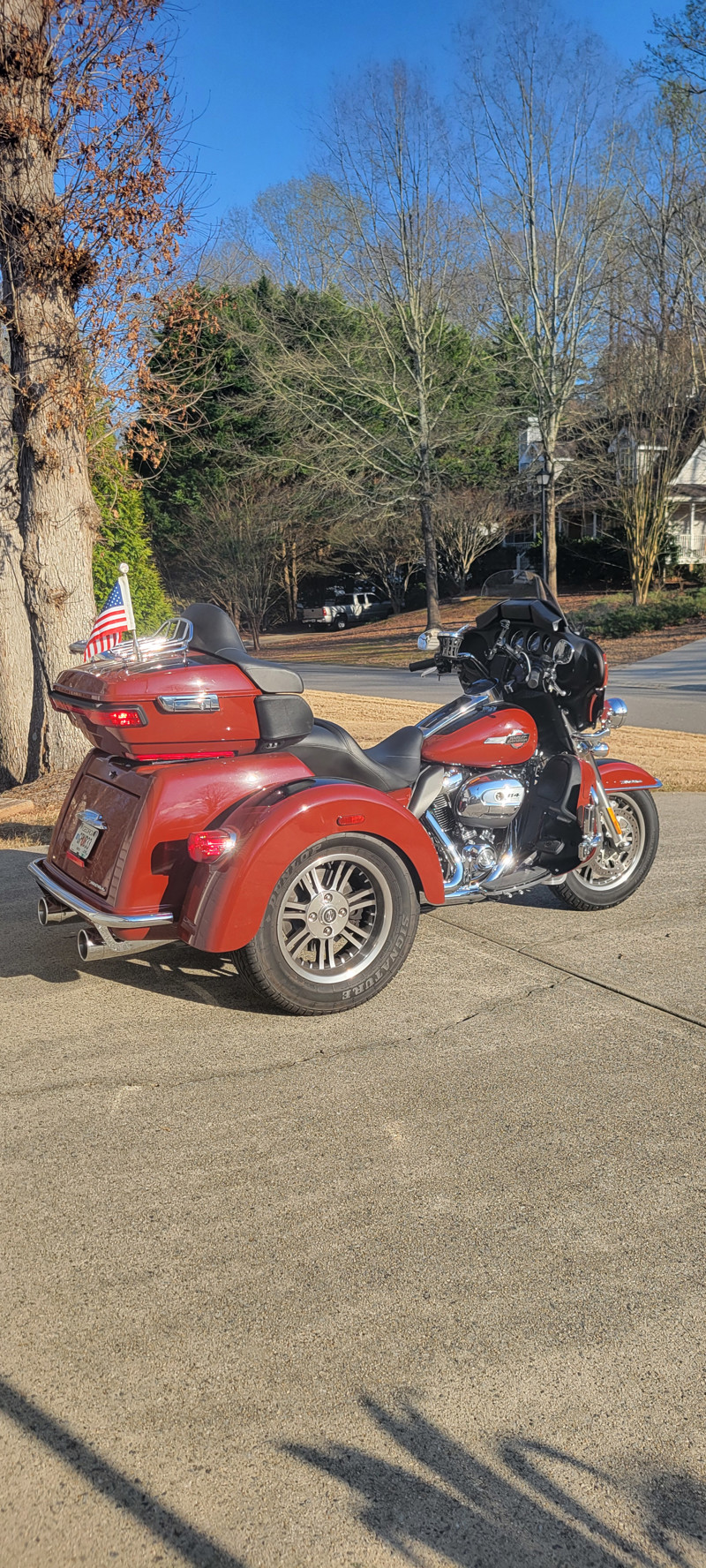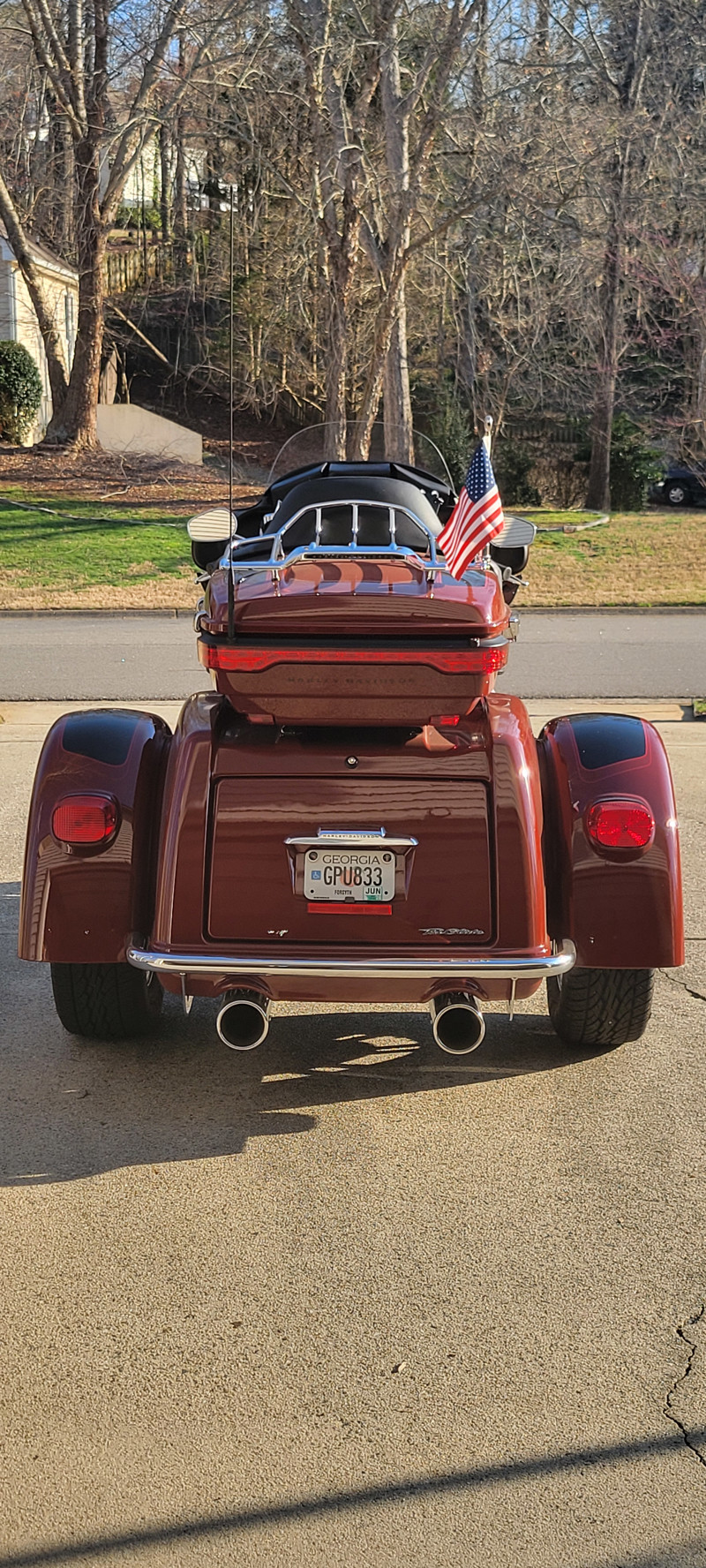 ? Chrome & Style: Upgraded grips, floorboards, and highway bars that set this trike apart