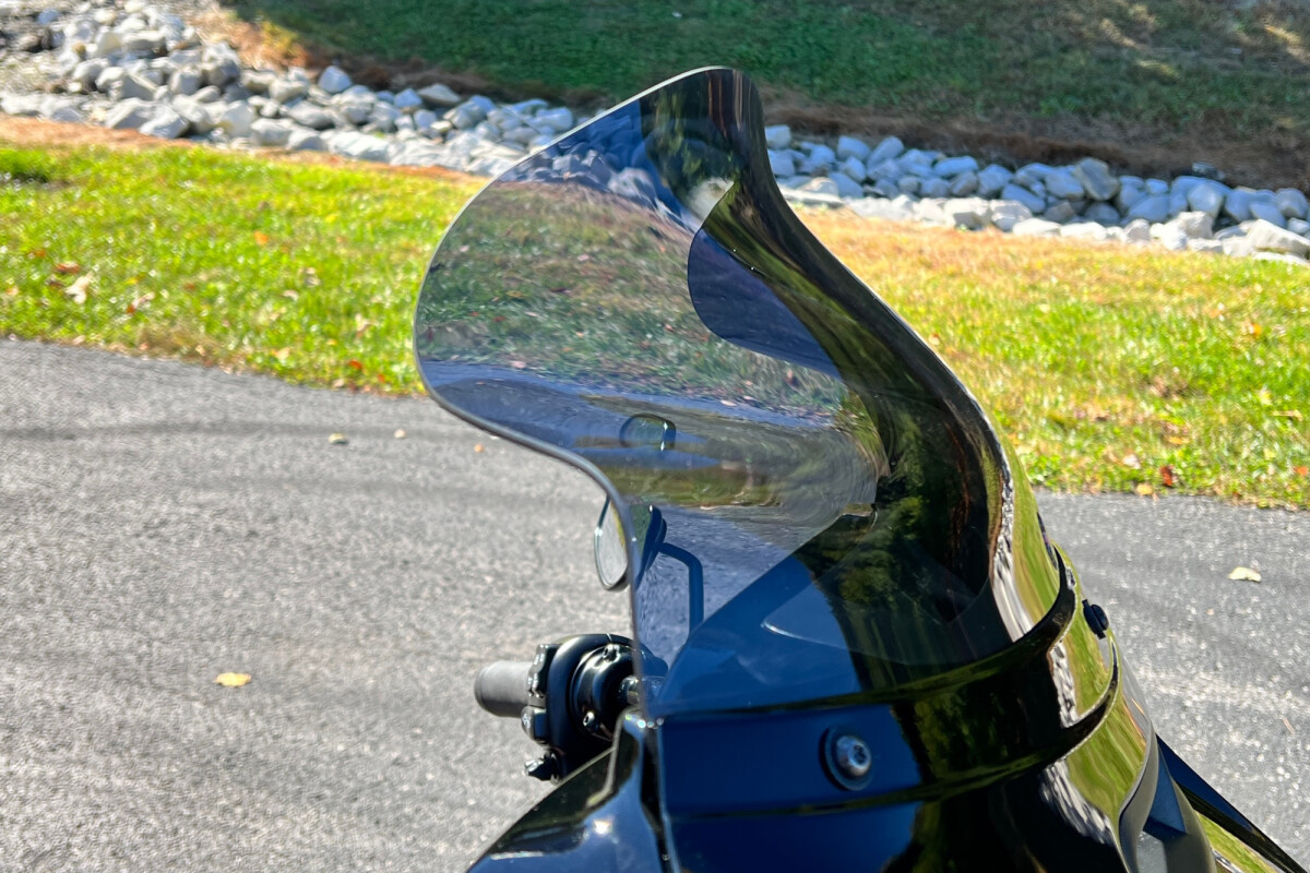 The boldly styled, vented batwing fairing delivers smooth air flow and reduces head buffeting.