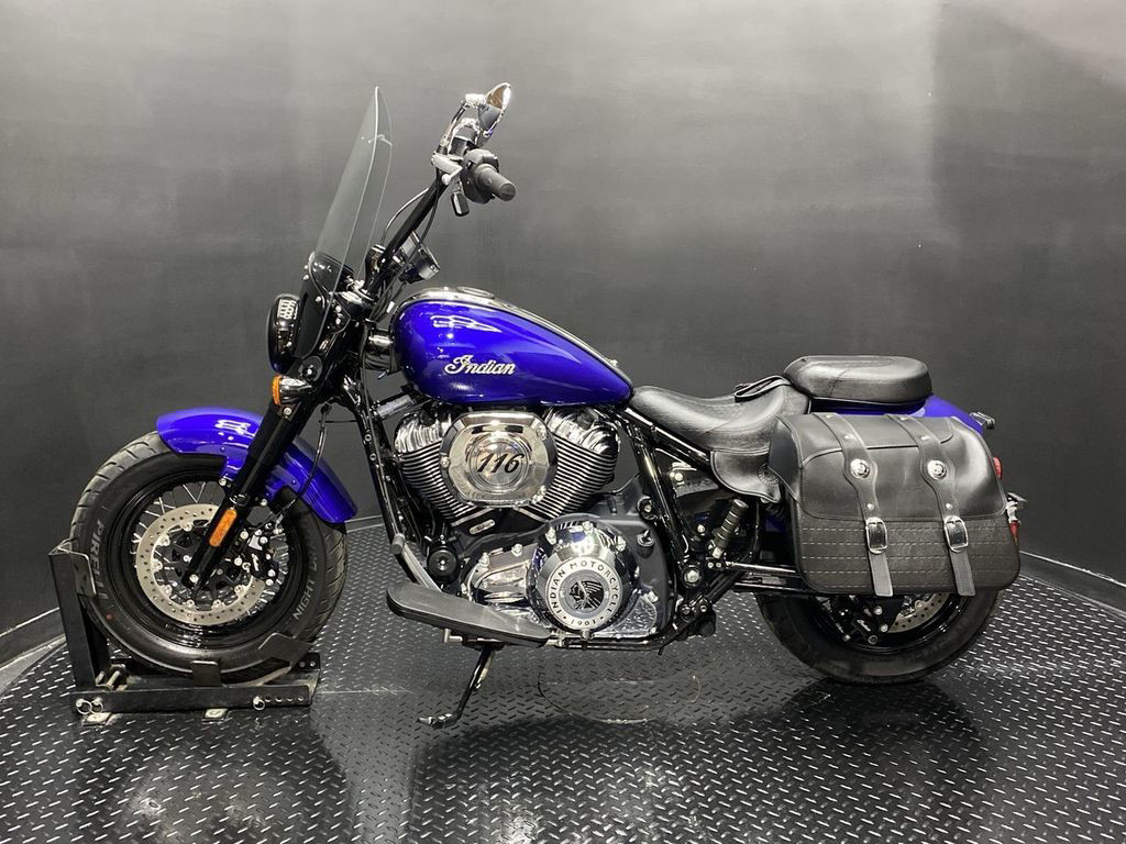 YOU ARE LOOKING AT A 2024 INDIAN SUPER CHIEF LIMITED WITH 1,828 MILES ON IT. IT IS SPIRIT BLUE METALLIC IN COLOR AND POWERED BY A 1890CC (116") FUEL INJECTED ENGINE AND 6 SPEED TRANSMISSION. THE BIKE COMES WITH ABS BRAKES, CRUISE CONTROL, NAVIGATION, KEYLESS RIDE, AND 1 FOB. BLACK APE HANGER BARS ($279.95) HAVE BEEN ADDED TO THE BIKE. THERE ARE NO SCRATCHES, DENTS, OR DINGS THAT I CAN FIND. THE CHROME AND ALUMINUM ARE IN GOOD CONDITION. THE TIRES HAVE GOOD TREAD LEFT ON THEM.