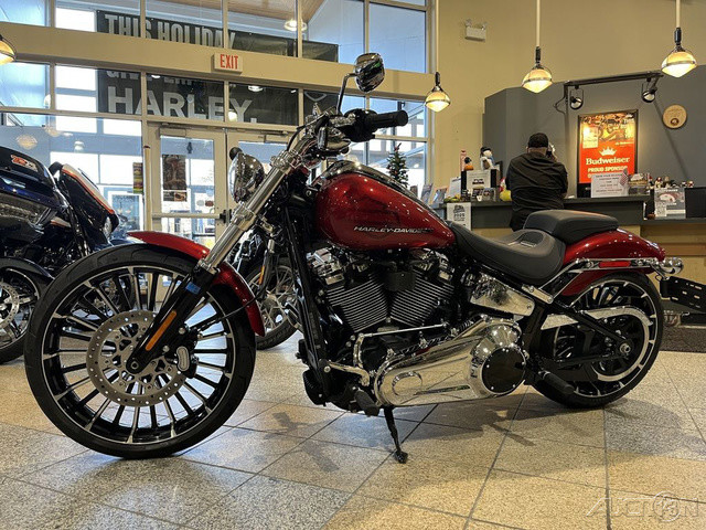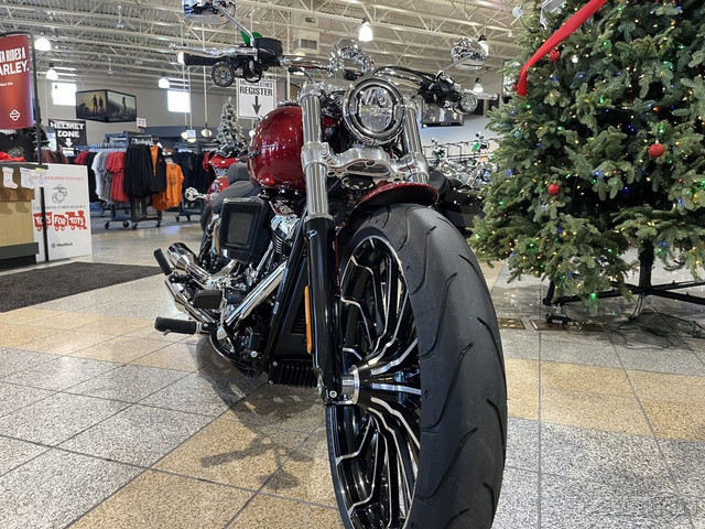 2025 Harley-Davidson® Breakout® Features may include: DESIGNLED LightingCompact lighting fits the old-school chopper vibe, while bright white LEDs meet modern standards.Premium Paint + GraphicsFive premium paint options include new Factory Custom Midnight Firestorm, with gloss black base and ghost flames.Rear Wheel240mm rear tire provides classic chopper styling with updated geometry and peak handling, while maintaining a wide contact patch to get maximum power to the ground during acceleration.Chopper-Style Rake34-degree rake is classic chopper style, while subtle adjustments to trail and chassis make this bike handle better than any old-school chopper ever could.PERFORMANCEMilwaukee-Eight® 117 Custom PowertrainA new, more powerful engine with incredible torque for intense acceleration from stops, commanding passing power, and effortless cruising at highway speeds.Two-Into-Two ExhaustEnjoy classic cruiser lines and high-flowing performance with this two-into-two exhaust system.Rear SuspensionHydraulic preload adjustment for monoshock is easily accessed underneath the seat for quick load adjustments to ensure optimal riding conditions.IntakeNew touring intake provides high-flowing performance and high-performance style.BrakesSingle 300mm front disc brake highlights the style of the bold 21-inch front wheel while providing incredible stopping performance.INNOVATIONFour-Inch Analog DisplayThe easy readability of an analog speedometer combined with the versatility of a digital screen that displays ride modes, mileage, and more.Hand ControlsNew ergonomic hand controls accommodate Rider Safety Enhancements, and an adjustable brake lever is quickly tunable to rider preference.USB-C ChargingUSB-C charging keeps your devices powered, so you can ride farther while using navigation, listening to music, and staying connected through your Bluetooth® headset.