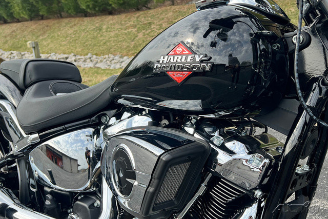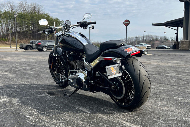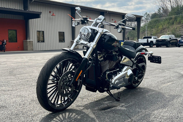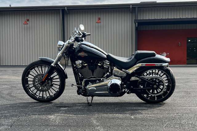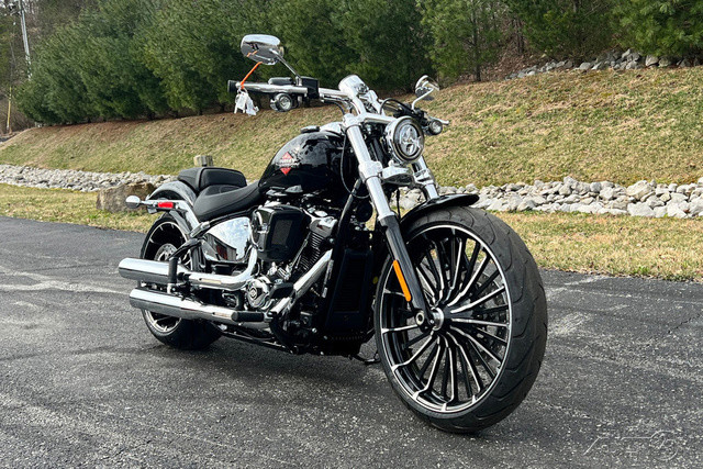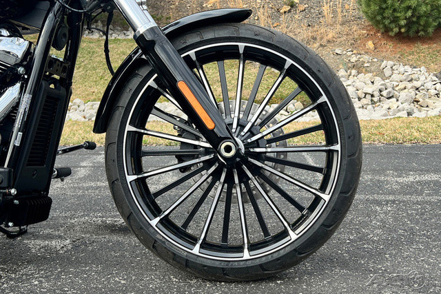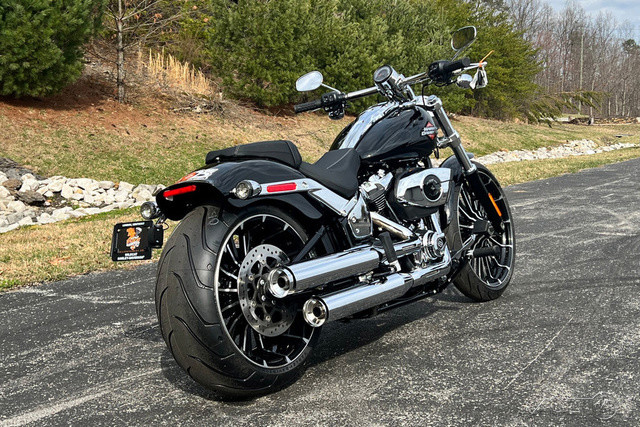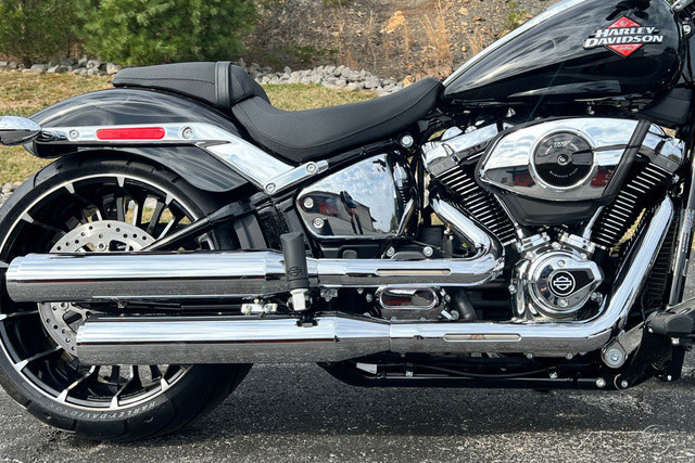 2025 Harley-Davidson® Breakout® Features may include: DESIGNLED LightingCompact lighting fits the old-school chopper vibe, while bright white LEDs meet modern standards.Premium Paint + GraphicsFive premium paint options include new Factory Custom Midnight Firestorm, with gloss black base and ghost flames.Rear Wheel240mm rear tire provides classic chopper styling with updated geometry and peak handling, while maintaining a wide contact patch to get maximum power to the ground during acceleration.Chopper-Style Rake34-degree rake is classic chopper style, while subtle adjustments to trail and chassis make this bike handle better than any old-school chopper ever could.PERFORMANCEMilwaukee-Eight® 117 Custom PowertrainA new, more powerful engine with incredible torque for intense acceleration from stops, commanding passing power, and effortless cruising at highway speeds.Two-Into-Two ExhaustEnjoy classic cruiser lines and high-flowing performance with this two-into-two exhaust system.Rear SuspensionHydraulic preload adjustment for monoshock is easily accessed underneath the seat for quick load adjustments to ensure optimal riding conditions.IntakeNew touring intake provides high-flowing performance and high-performance style.BrakesSingle 300mm front disc brake highlights the style of the bold 21-inch front wheel while providing incredible stopping performance.INNOVATIONFour-Inch Analog DisplayThe easy readability of an analog speedometer combined with the versatility of a digital screen that displays ride modes, mileage, and more.Hand ControlsNew ergonomic hand controls accommodate Rider Safety Enhancements, and an adjustable brake lever is quickly tunable to rider preference.USB-C ChargingUSB-C charging keeps your devices powered, so you can ride farther while using navigation, listening to music, and staying connected through your Bluetooth® headset.