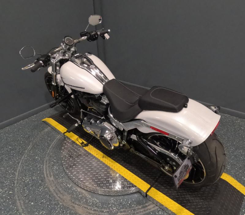 Meet the 2025 Harley-Davidson Breakout Softail, a used cruiser with the iconic Breakout presence. Finished in White Onyx Pearl, this bike wears chrome accents that highlight its bold styling. The odometer shows only 373 miles, indicating extremely light use for a used machine. Powered by a gasoline-fueled two-cylinder engine, it rides on a Softail chassis for a comfortable, confident ride on highways or city streets. ???