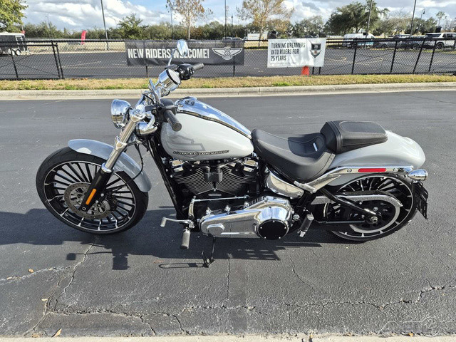 2025 Harley-Davidson® Breakout® Features may include: DESIGNLED LightingCompact lighting fits the old-school chopper vibe, while bright white LEDs meet modern standards.Premium Paint + GraphicsFive premium paint options include new Factory Custom Midnight Firestorm, with gloss black base and ghost flames.Rear Wheel240mm rear tire provides classic chopper styling with updated geometry and peak handling, while maintaining a wide contact patch to get maximum power to the ground during acceleration.Chopper-Style Rake34-degree rake is classic chopper style, while subtle adjustments to trail and chassis make this bike handle better than any old-school chopper ever could.PERFORMANCEMilwaukee-Eight® 117 Custom PowertrainA new, more powerful engine with incredible torque for intense acceleration from stops, commanding passing power, and effortless cruising at highway speeds.Two-Into-Two ExhaustEnjoy classic cruiser lines and high-flowing performance with this two-into-two exhaust system.Rear SuspensionHydraulic preload adjustment for monoshock is easily accessed underneath the seat for quick load adjustments to ensure optimal riding conditions.IntakeNew touring intake provides high-flowing performance and high-performance style.BrakesSingle 300mm front disc brake highlights the style of the bold 21-inch front wheel while providing incredible stopping performance.INNOVATIONFour-Inch Analog DisplayThe easy readability of an analog speedometer combined with the versatility of a digital screen that displays ride modes, mileage, and more.Hand ControlsNew ergonomic hand controls accommodate Rider Safety Enhancements, and an adjustable brake lever is quickly tunable to rider preference.USB-C ChargingUSB-C charging keeps your devices powered, so you can ride farther while using navigation, listening to music, and staying connected through your Bluetooth® headset.