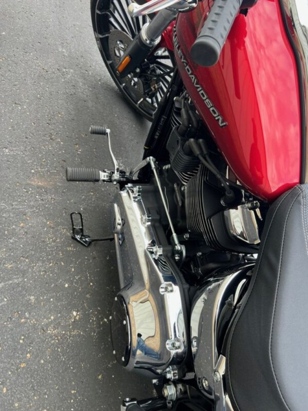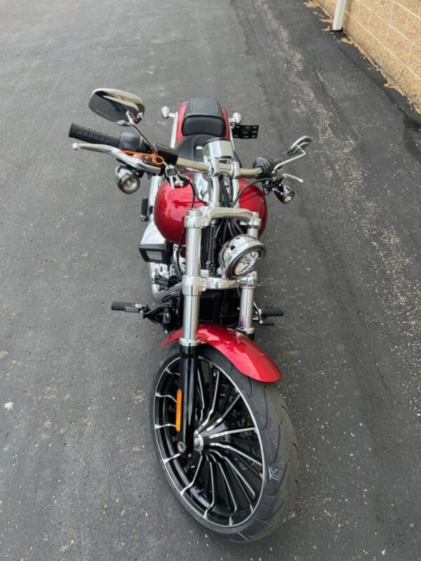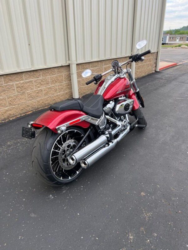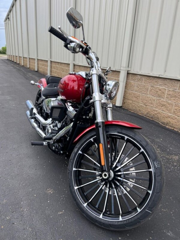 With a wide rear tire, bobtail rear fender, long rake, straight handlebars, and a 21-inch front wheel, the Breakout marries classic chopper style with the performance of a Milwaukee-Eight 117 Custom powertrain.