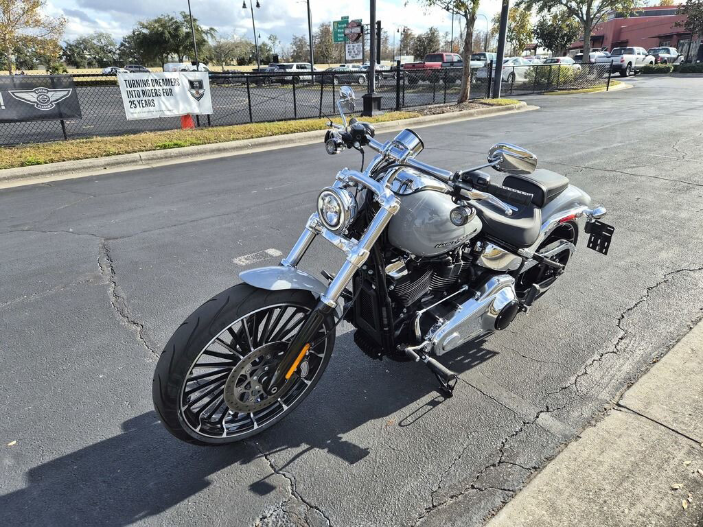 2025 Harley-Davidson Breakout Features may include: DESIGN LED Lighting Compact lighting fits the old-school chopper vibe, while bright white LEDs meet modern standards. Premium Paint + Graphics Five premium paint options include new Factory Custom Midnight Firestorm, with gloss black base and ghost flames. Rear Wheel 240mm rear tire provides classic chopper styling with updated geometry and peak handling, while maintaining a wide contact patch to get maximum power to the ground during acceleration. Chopper-Style Rake 34-degree rake is classic chopper style, while subtle adjustments to trail and chassis make this bike handle better than any old-school chopper ever could.PERFORMANCE Milwaukee-Eight 117 Custom Powertrain A new, more powerful engine with incredible torque for intense acceleration from stops, commanding passing power, and effortless cruising at highway speeds. Two-Into-Two Exhaust Enjoy classic cruiser lines and high-flowing performance with this two-into-two exhaust system. Rear Suspension Hydraulic preload adjustment for monoshock is easily accessed underneath the seat for quick load adjustments to ensure optimal riding conditions. Intake New touring intake provides high-flowing performance and high-performance style. Brakes Single 300mm front disc brake highlights the style of the bold 21-inch front wheel while providing incredible stopping performance.INNOVATION Four-Inch Analog Display The easy readability of an analog speedometer combined with the versatility of a digital screen that displays ride modes, mileage, and more. Hand Controls New ergonomic hand controls accommodate Rider Safety Enhancements, and an adjustable brake lever is quickly tunable to rider preference. USB-C Charging USB-C charging keeps your devices powered, so you can ride farther while using navigation, listening to music, and staying connected through your Bluetooth headset.