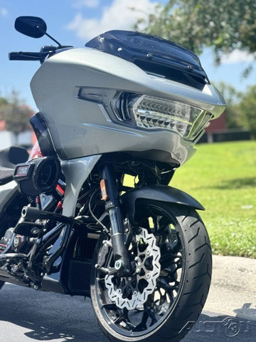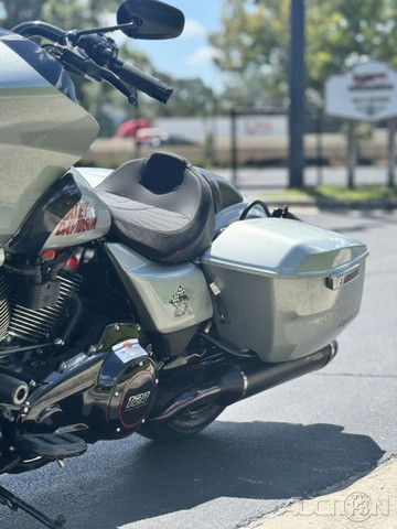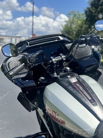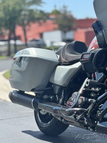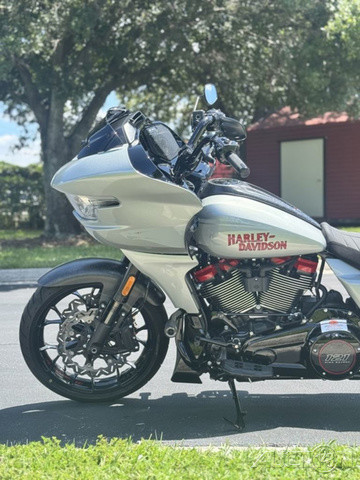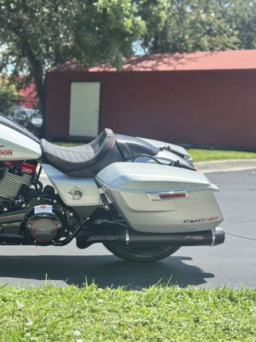 2025 Harley-Davidson® CVO™ Road Glide® STFeatures may include:DESIGNPremium PaintScreamin’ Eagle graphic flows from the sides of the fairing into the fuel tank, and Performance Red pops throughout the powertrain.Solo SeatThe lightweight and aggressive solo seat is comfortable, with a steep back to provide lower-back support in hard launches and grip during cornering.Forged Carbon Fiber Front FenderForged carbon fiber replaces the typical steel front fender, cutting weight with a race-inspired, ultra-premium finish.PERFORMANCEMilwaukee-Eight® 121 HO Engine With 127 horsepower and 145 ft-lb of torque, this is the strongest factory-installed engine ever used in a production Harley-Davidson, with a high-performance camshaft, Heavy Breather Intake, and rev limit increased to 5,900 rpm.Front ForksWith 4.6 inches of travel, the fully adjustable SHOWA® 47mm inverted forks can be precisely tuned for compression, rebound, and preload to suit your comfort level and riding style.Rear ShocksDual outboard SHOWA® Remote Reservoir shocks with three inches of travel, positioned between the saddlebags and rear fender, keep oil and gas separated for consistent performance under demanding conditions.INNOVATION12.3-Inch TFT Display + Skyline™ OSThe large, bright touchscreen display provides gauges, ride modes, and navigation with traffic and weather overlays. It gives easy access to the Rockford Fosgate Stage II audio system, Ride Modes, and Rider Safety Enhancements, all at the touch of a finger.Ride ModesEight available ride modes give you more options for precise tuning on the go. Track and Track + mode unlock levels of performance reserved for closed-course riding and race use.