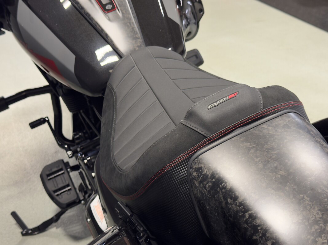 Inspired by our MotoAmerica King of the Baggers race bikes, the CVO Road Glide ST features lightweight carbon-fiber parts, competition-inspired electronic assists, and the Milwaukee-Eight 121 High Output V-twin engine, bringing track-ready performance and engineering to the streets.