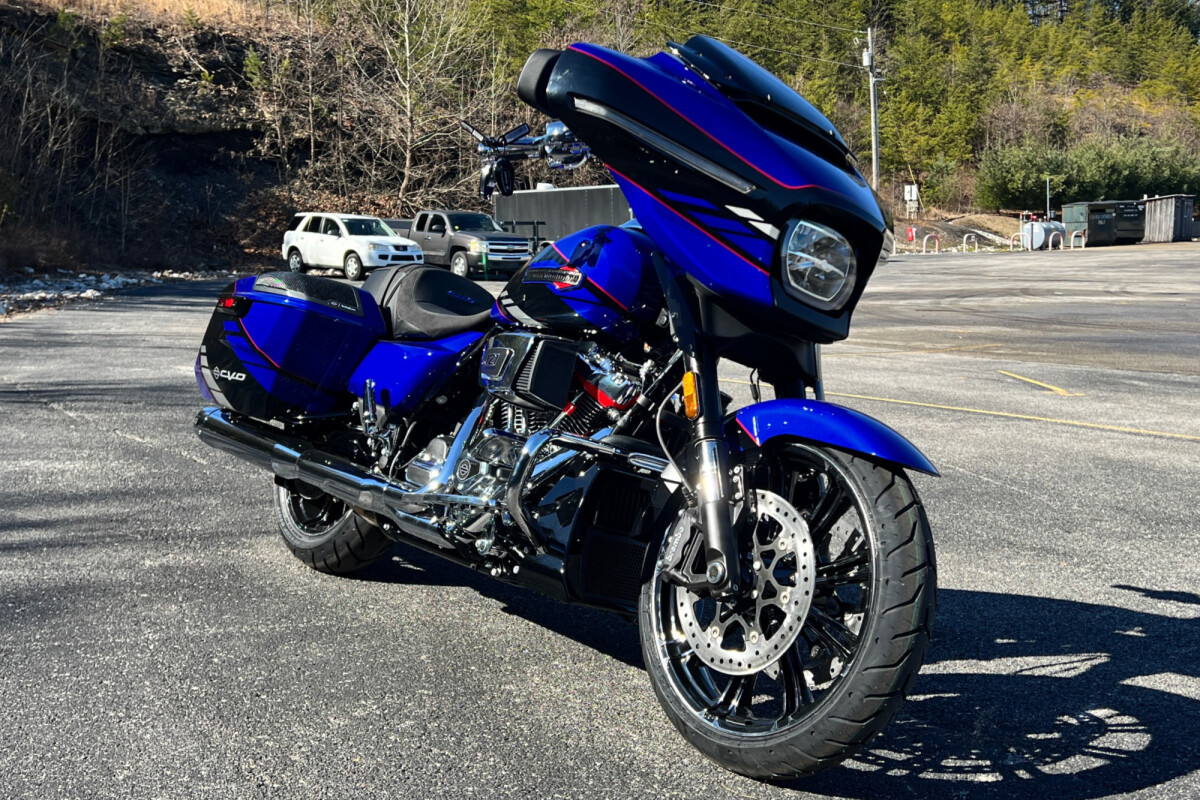 2025 Harley-Davidson CVO Road Glide ST Features may include: DESIGNPremium Paint CVO paint is the peak of craftsmanship, with layers that deliver unmatched depth and texture. Each model gets its own custom design, with perfectly matched trim and components to complete the package. Premium Finishes Chrome finishes and paint-matched components are different for each paint scheme, ensuring the highest level of custom feel and unique identity. New Cast Wheels Unique, lightweight cast wheels designed specifically for the 2025 CVO Street Glide are complemented by top-shelf Brembo braking components. PERFORMANCEMilwaukee-Eight VVT 121 Engine Dynamic performance across a wide rev range, supported by variable valve timing that changes performance based on RPM to deliver the most power possible. Rear Shocks Asymmetric rear shocks allow for quick preload adjustment, ensuring optimal performance regardless of changing payload. Front Forks 47mm SHOWA inverted forks are comfortable and plush on the highway while maintaining confidence in fast corners. INNOVATIONSkyline OS Connected infotainment system has Wi-Fi-enabled Skyline OS, intuitive menu navigation, and enhanced on-the-fly map updates. 12.3-Inch TFT Display A massive touchscreen you would expect in the latest luxury cars, providing bright and clear information, including ride modes.