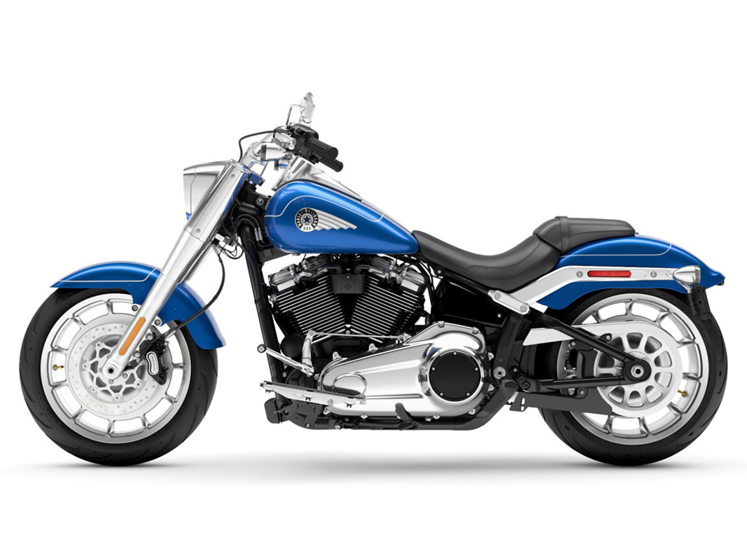 Adored since day one, the singular Fat Boy stands out with bright chrome and bold finishes, and now it is better than ever with a big Milwaukee-Eight® 117 Custom V-twin engine