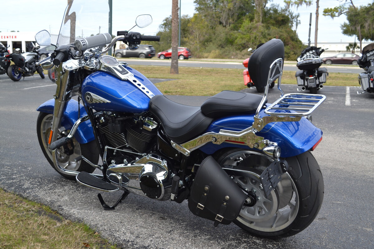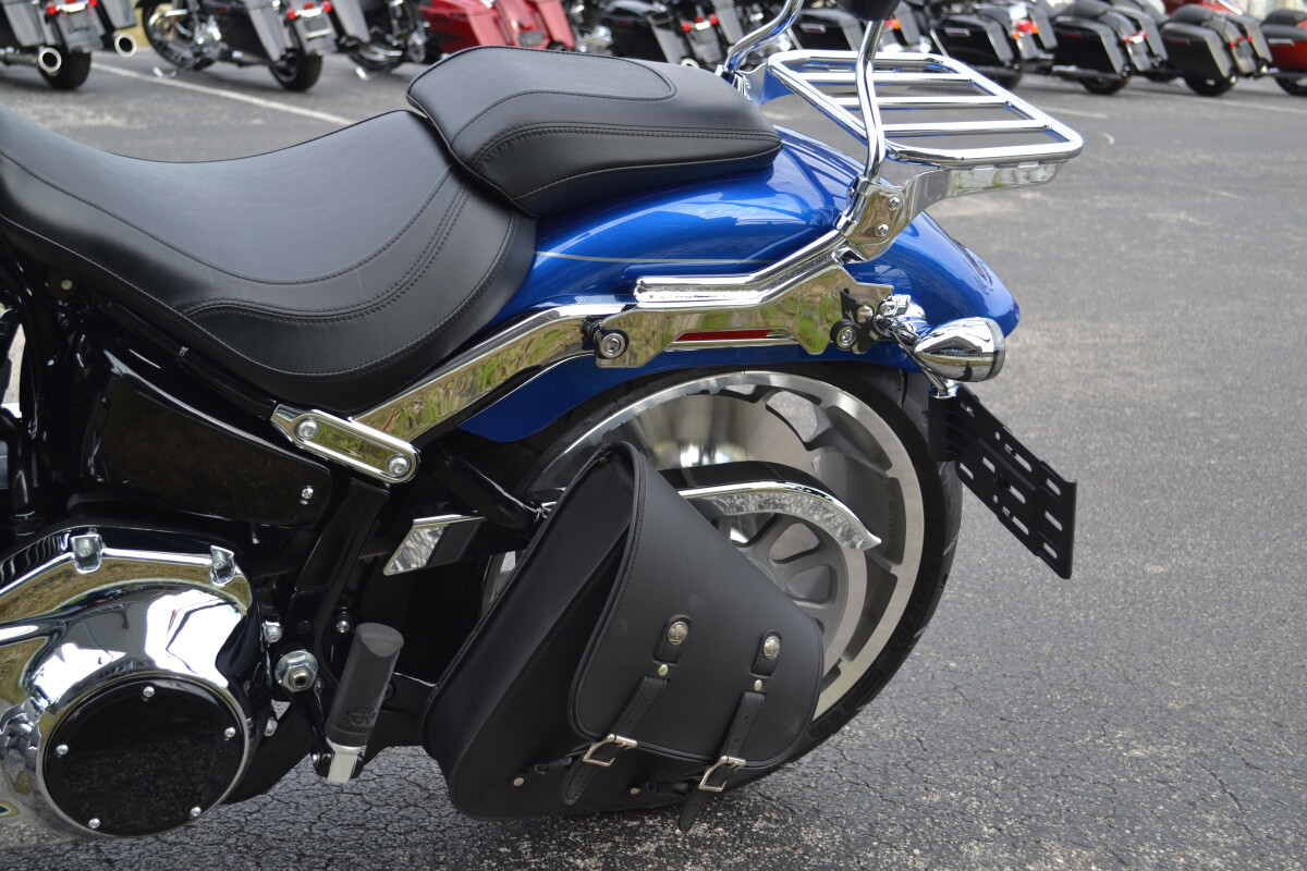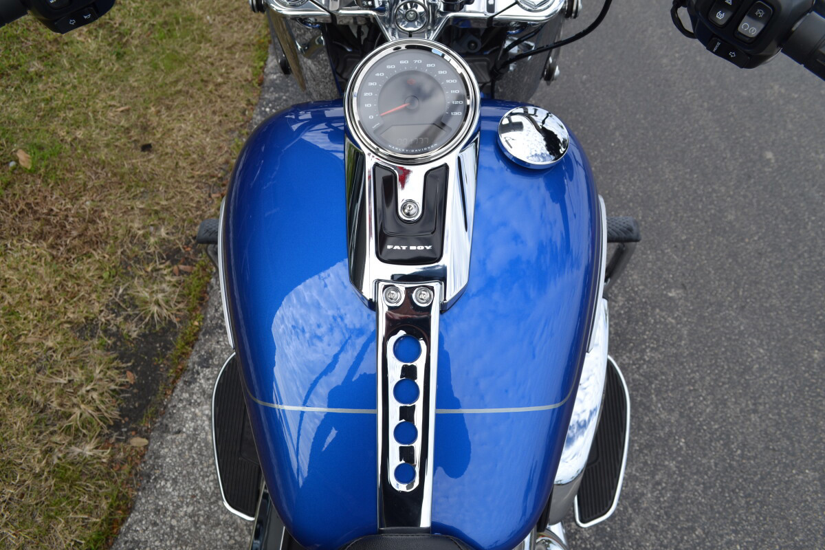 Adored since day one, the singular Fat Boy stands out with bright chrome and bold finishes, and now it is better than ever with a big Milwaukee-Eight 117 Custom V-twin engine.