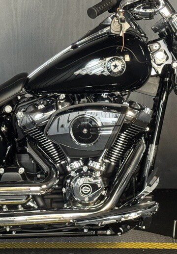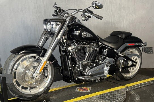Adored since day one, the singular Fat Boy stands out with bright chrome and bold finishes, and now it is better than ever with a big Milwaukee-Eight 117 Custom V-twin engine.