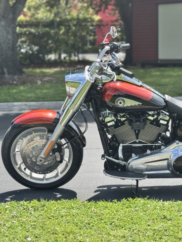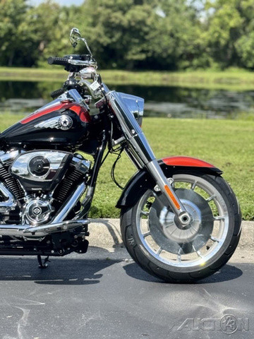 2025 Harley-Davidson® Fat Boy® Features may include: DESIGN Paint The best factory paint in the world covers a classic rounded gas tank that is finished with a new, bold tank medallion. Wheels 18-inch machined Lakester wheels with massive tires are covered by cutback fenders for powerful stance and commanding presence. Headlamp Nacelle The iconic Fat Boy headlight nacelle shines in bright polished chrome, accentuating the large and muscular look of the front end. PERFORMANCE Milwaukee-Eight® 117 Custom Engine Milwaukee-Eight® 117 Custom V-twin engine delivers sound, feel, and all the power you need for effortless long-mile highway cruising or exhilarating in-town performance. Rear Suspension Updated monoshock suspension is more comfortable while still firm and composed during aggressive riding. Two-into-Two Exhaust A key feature of Fat Boy design, the two-into-two exhaust has been updated for high-flowing performance and a rich V-twin sound. INNOVATION Five-Inch Analog Display Analog gauge is clear and easy to read, while an integrated digital display shows key information like Ride Modes. Hand Controls Updated hand controls accommodate Cruise Control and newly integrated tech features, including Ride Modes and Traction Control. USB-C Charging USB-C charging keeps your devices powered, so you can ride farther while using navigation, listening to music, and staying connected through your Bluetooth® headset.