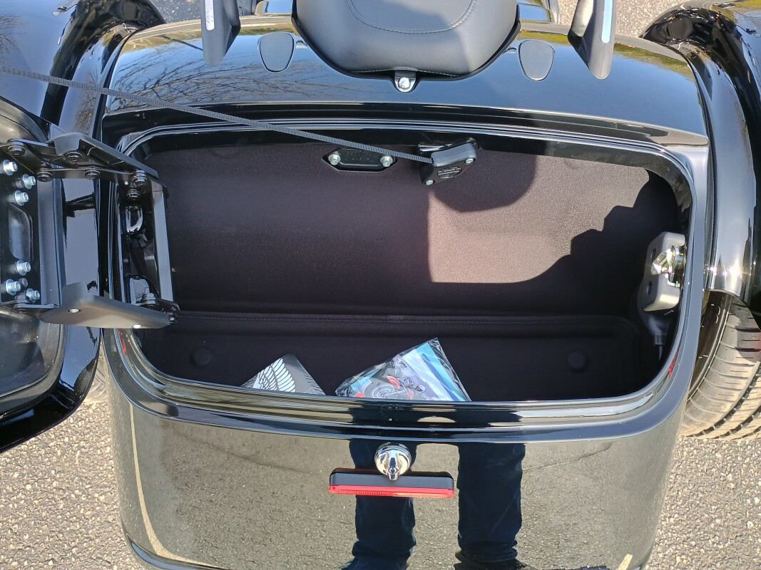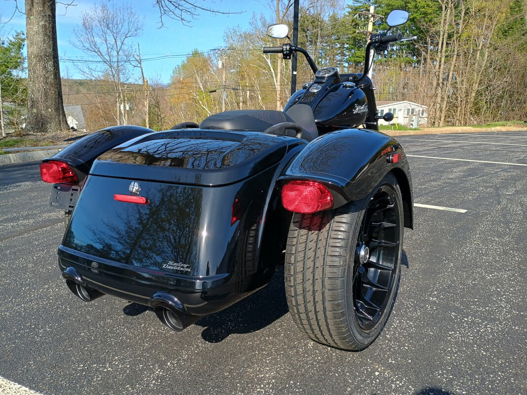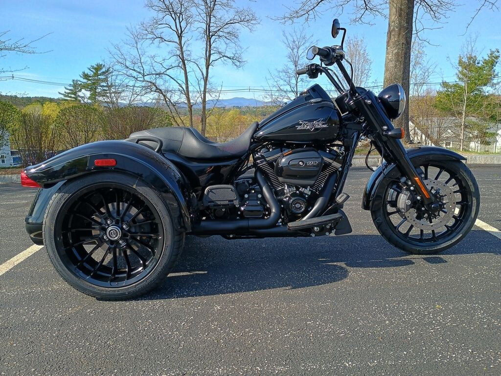 2025 Harley-Davidson Freewheeler Features may include: DESIGN Mini-Ape Handlebars Tall handlebars put the rider in a powerful and commanding stance, with iconic style and a range of adjustability for height and reach. Blacked-Out Styling Blacked-out finishes start at the front wheel and carry through the forks, dashboard, powertrain, and exhaust system. Storage Fit a pair of helmets side by side and still have extra room in the trunk that opens from right to left for easy loading, with a weatherproof, locking lid to keep all your goods safe and secure. Rear Fenders Bobtail fenders add a bit of traditional H-D flare to the Freewheeler’s rear end. Seat with Passenger Grab Handles Two-up seat features soft-touch grab handles for added passenger stability and confidence. PERFORMANCE Milwaukee-Eight 114 Engine The Milwaukee-Eight V-twin engine has plenty of power for easy highway cruising, effortless passing, and eye-watering acceleration. Front Suspension Dual-bending valve front suspension is plush and soft on the highway, but firm enough to maintain composure during hard riding. Rear Suspension Rear suspension features a quick-adjust preload knob to tune performance when adding a passenger or loading up the trunk. Slash-Down Dual Mufflers Dual mufflers with slash-down tips between the rear wheels deliver a classic hot rod style. INNOVATION Rider Safety Enhancements Keep your feet up, flip into Electric Reverse, and back into that parking spot with ease and minimal effort.