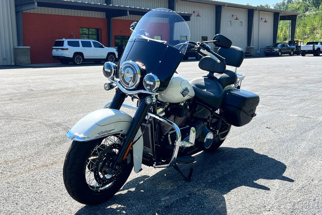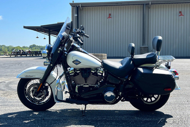2025 Harley-Davidson® Heritage Classic Features may include: DESIGN Paint + Graphics From deep, lustrous black to two-toned Whiskey Fire/Vivid Black, the 2025 Heritage Classic is available in a color that matches your personal style and complements the classic rounded fuel tank and medallion. Saddlebags Leather-studded style with the versatility of hard-framed, weather-proof bags that have keyed locks and top-loading convenience. LED Lighting See and be seen with bright white LED headlight, bold auxiliary lights, and LED turn signals and brake light. PERFORMANCE Milwaukee-Eight® 117 Classic Engine Effortless highway cruising with plenty of passing power, thanks to the new, larger displacement Milwaukee-Eight® 117 Classic engine. Two-Into-Two Exhaust Compact, lightweight design tuned for performance and sound while providing a low, sweeping visual line with nostalgic style. INTAKE Classic intake shape matches throwback design while updated filter maximizes airflow and performance. Rear Suspension Updated monoshock features under-the-seat preload adjustment to adapt for an added passenger or loaded-up saddlebags quickly and easily INNOVATION Five-Inch Analog Display The nostalgic style of an analog gauge supported by a digital display that facilitates changes to Ride Modes. Hand Controls Updated hand controls accommodate the addition of Ride Modes, Traction Control, and Cruise Control. USB-C Charging USB-C charging keeps your devices powered, so you can ride farther while using navigation, listening to music, and staying connected through your Bluetooth® headset. ADJUSTABLE BRAKE LEVER Tune brake lever distance to your precise preference with a quick-adjust knob