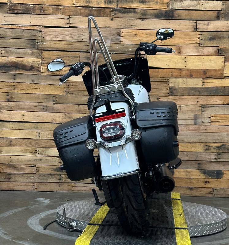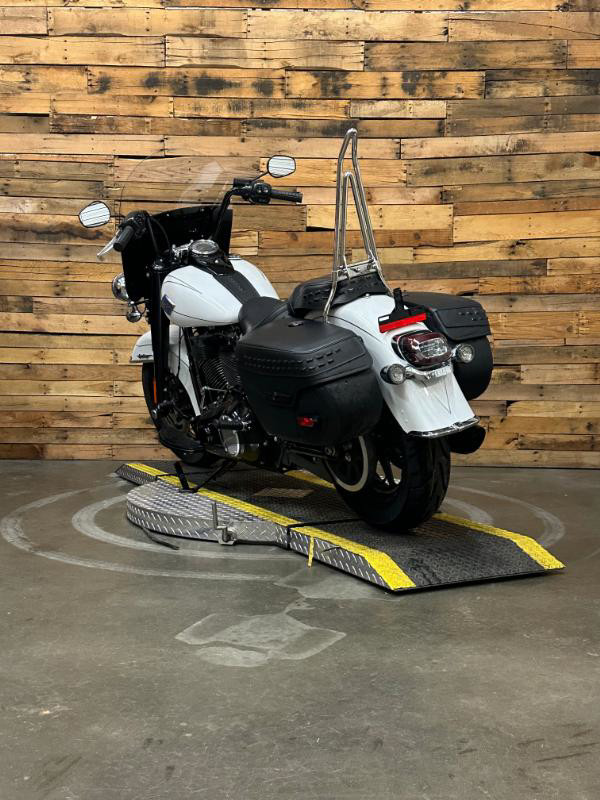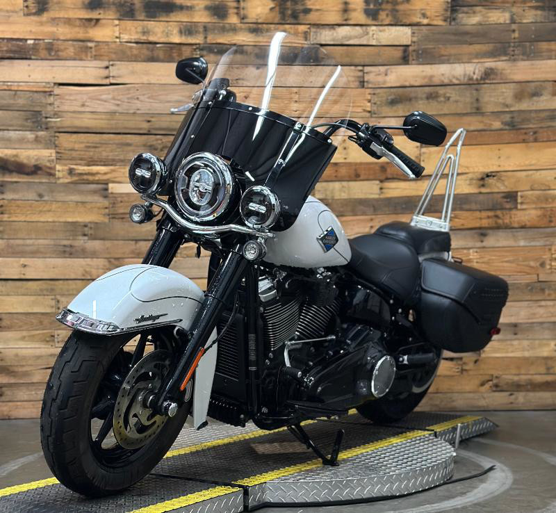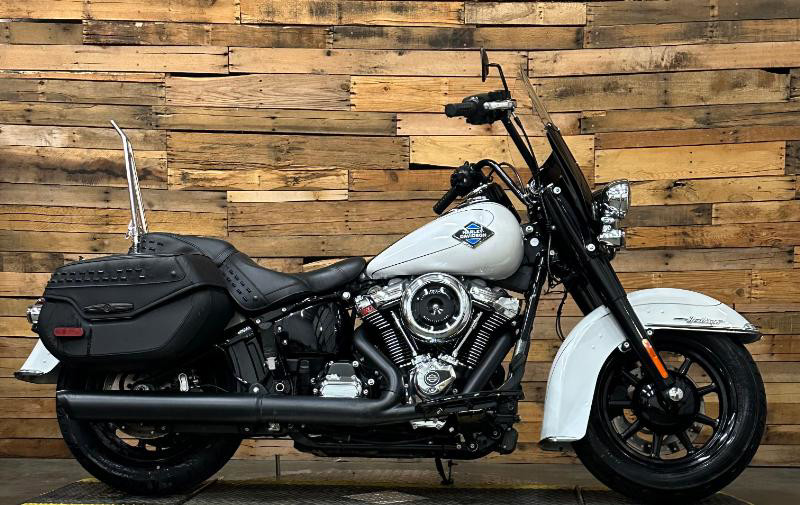 A refined Heritage Classic blending vintage Harley style with modern performance and a standout pearl finish.