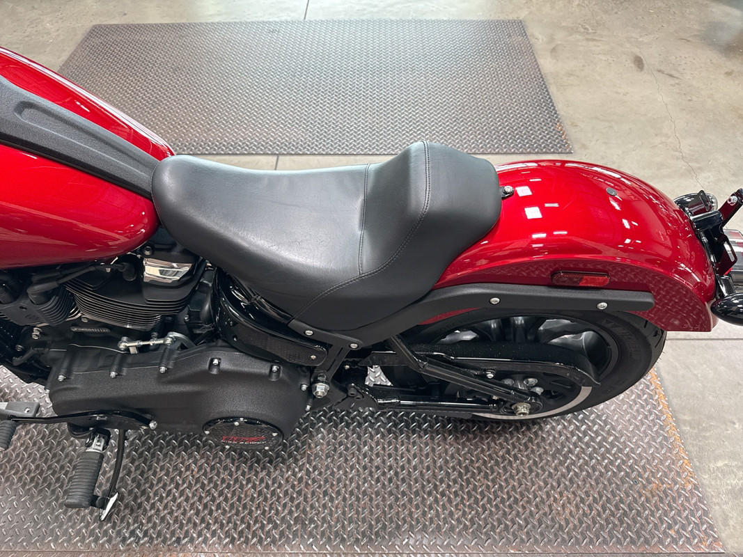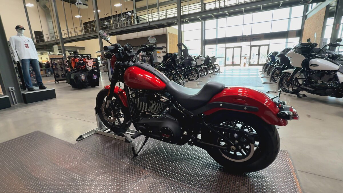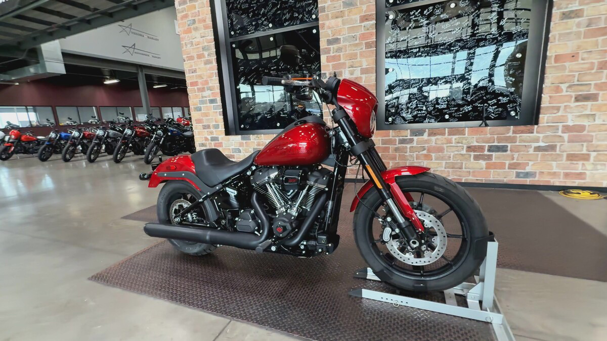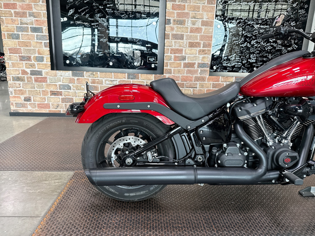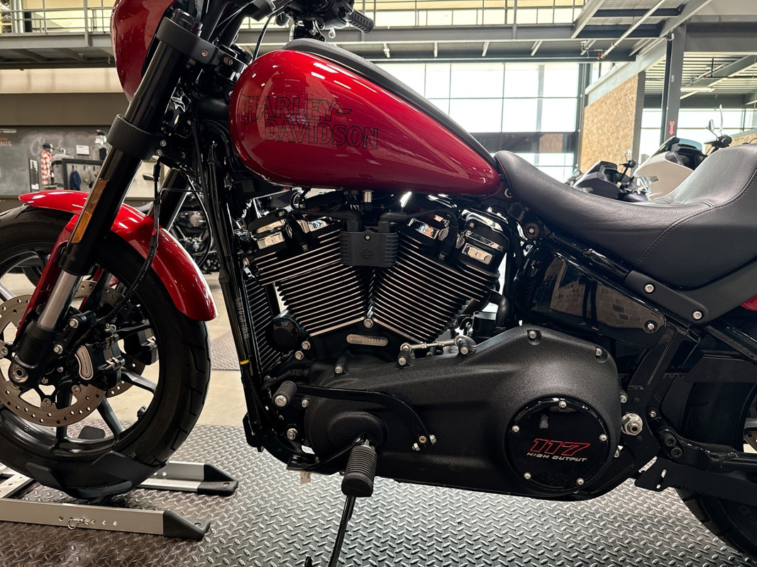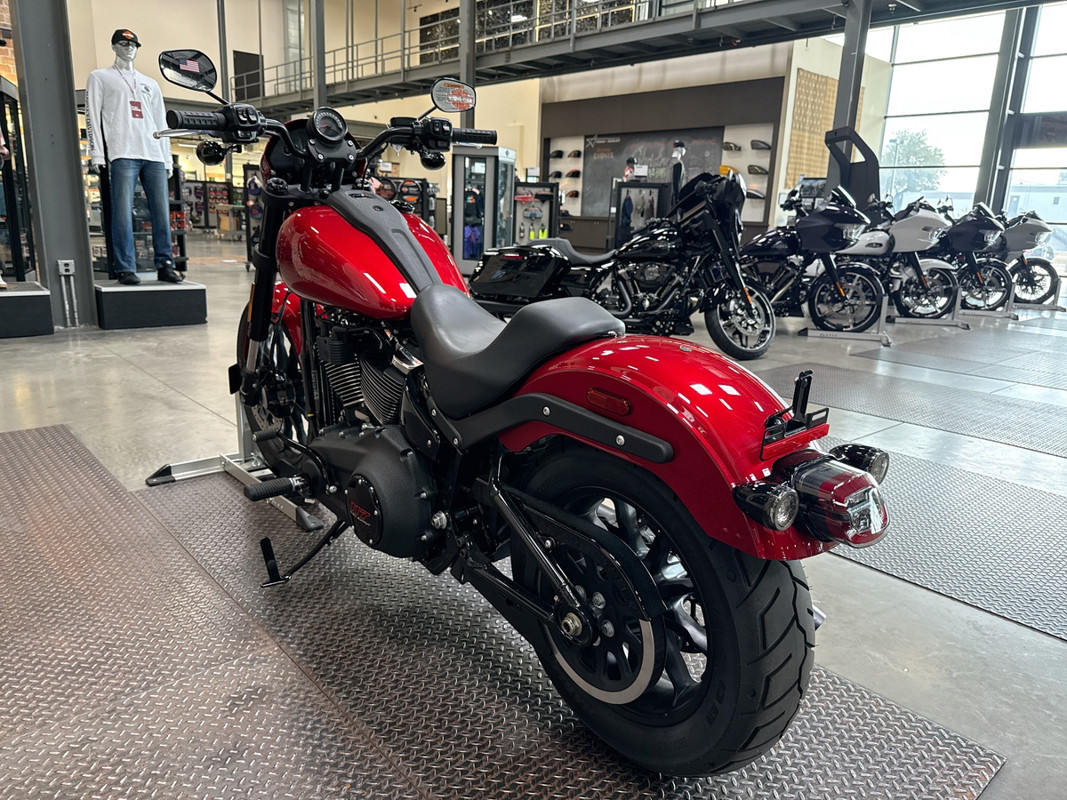 The exterior of the Low Rider S is a captivating Brilliant Red, a color that demands attention and exudes confidence. This vibrant hue is perfectly complemented by sleek black accents, creating a striking contrast that enhances its bold aesthetic. The bike's design is both aggressive and elegant, making it a standout on any street.