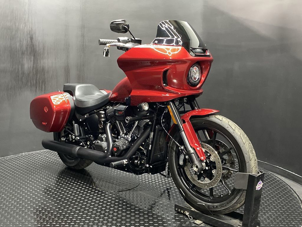 YOU ARE LOOKING AT A 2025 HARLEY DAVIDSON LOW RIDER ST (FXLRST) WITH ONLY 299 MILES ON IT. IT IS BILLIARD RED IN COLOR AND POWERED BY A 1923CC (117") FUEL INJECTED MILWAUKEE EIGHT ENGINE AND 6 SPEED TRANSMISSION. THE BIKE COMES WITH ABS BRAKES, CRUISE CONTROL, 2 KEYS, 1 FOB, AND FACTORY SECURITY SYSTEM. THERE ARE SOME EXTRAS ON THE BIKE WHICH INCLUDE A CRASH BAR ($269.95), SEAT ($424.95), PASSENGER PEG KIT ($179.95), AND INNER FAIRING SPEAKERS ($1,149.95). THERE ARE NO SCRATCHES, DENTS, OR DINGS THAT I CAN FIND. THE CHROME AND ALUMINUM ARE IN GOOD CONDITION WITH THE EXCEPTION OF A SMALL TOUCHUP ON THE DERBY COVER. THE TIRES HAVE GOOD TREAD LEFT ON THEM.