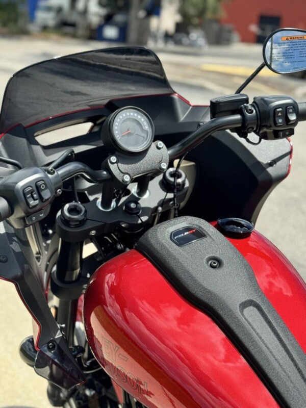 Inspired by West Coast customizers who embrace classic FXRT fairings, the Low Rider ST’s lightweight, frame-mounted fairing is designed with computational fluid dynamics (CFD) for refined aerodynamic performance.