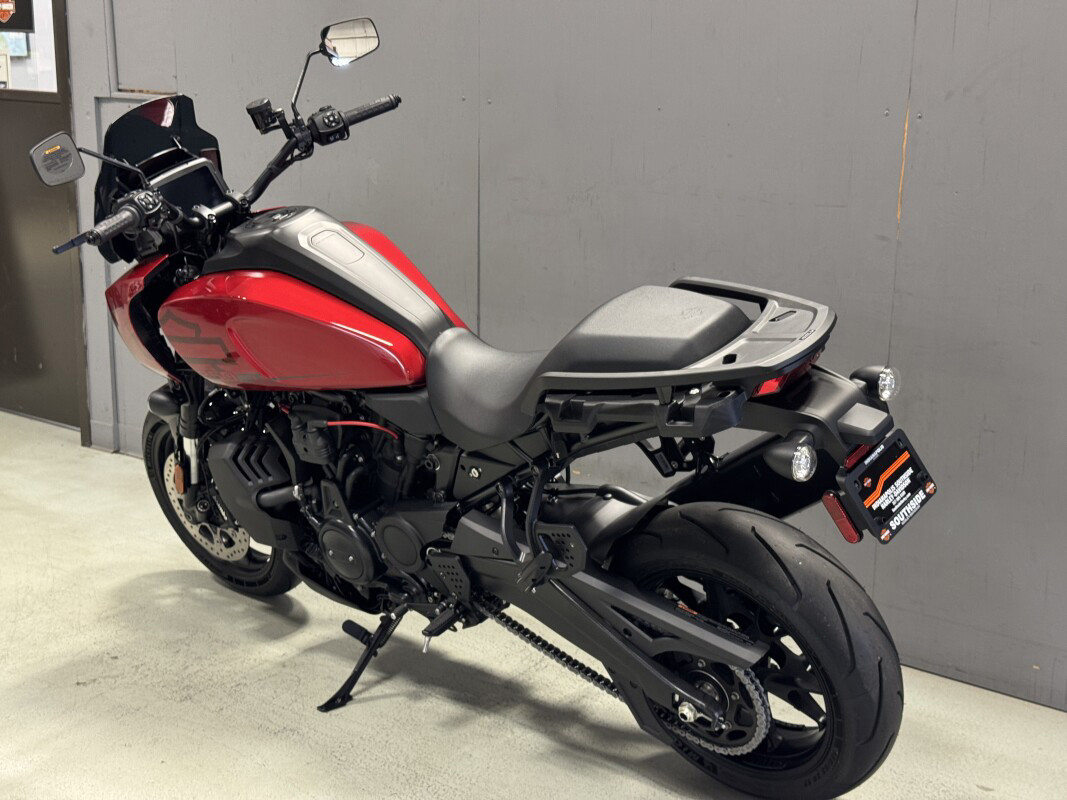 Building on the proven performance of the Pan America platform, the 2025 Pan America 1250 ST is reimagined for faster, more comfortable, and capable pavement performance, with lowered suspension, quick-shifting, 17-inch wheels, high-performance tires, and a slimmer, lighter profile.