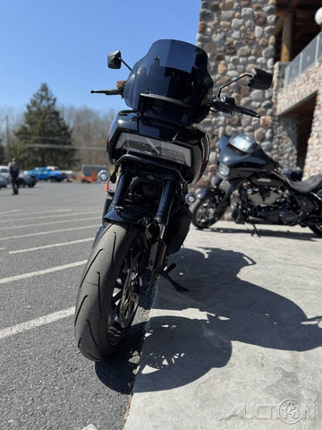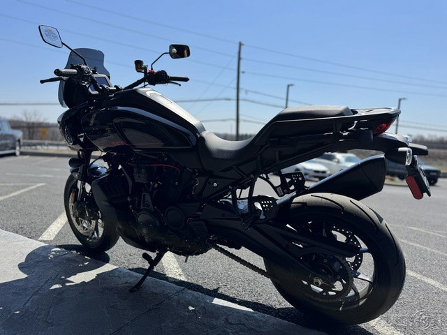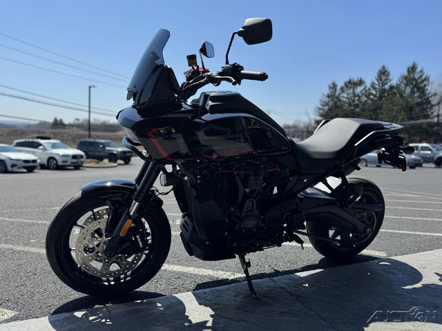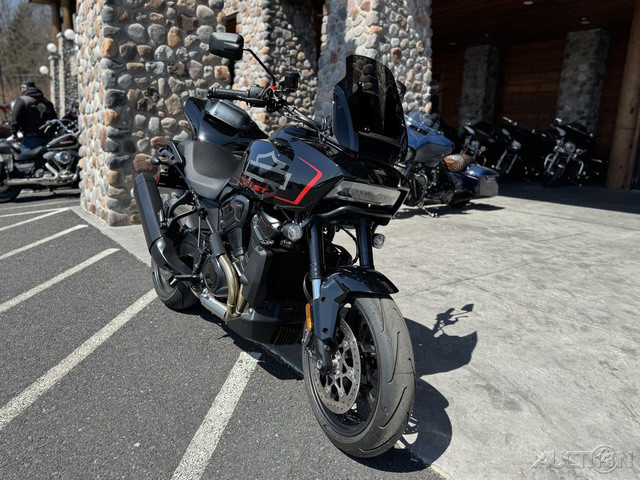 2025 Harley-Davidson® Pan America® 1250 STFeatures may include:DESIGNLower SeatAn all-new, one-piece seat lowers the rider's height for easier mounting and confident footing at stops. Its shape supports aggressive cornering while ensuring comfort and control.Front FenderStreet-style lower fender hugs the Michelin® Scorcher Sport tire for a sleeker, more aerodynamic design.Blacked-Out StylingFrom the lightweight muffler to the front cylinder, the blacked-out powertrain is raw and aggressive, but also subtle and understated.PERFORMANCERevolution® Max 1250 Engine The liquid-cooled Revolution Max 1250 has a broad powerband with 149 horsepower and 94 ft-lb of torque at its peak. Integrated into the chassis as a load-bearing element, this engine not only shaves off weight but also improves rigidity for a more responsive ride.WheelsThe 17-inch cast-aluminum wheels are built for fast handling and come stock with Michelin Scorcher Sport tires, boosting your street performance for sharper, more responsive rides.Adaptive Ride HeightStandard on North American models, Adaptive Ride Height (ARH) drops up to one inch in a stopped position, allowing you to mount or dismount the Pan America 1250 ST with ease and confidence.SuspensionLowered suspension drops the center of gravity and eliminates unneeded ground clearance for optimal road performance. SHOWA® Balance Free 47mm forks and a SHOWA Balance Free monoshock feature electronically adjustable pre-load and manually adjustable compression and rebound.BrakesDual front Brembo Monoblock radially mounted four-piston calipers and hub-mounted 320mm brake rotors provide incredible stopping power with direct lever feel, while trailing in the rear are a single-piston Brembo caliper and 280mm rotor.QuickshifterClick through the gears, up and down, without clutching or worrying about damaging your transmission. Quick, smooth shifts are achieved with little more than a tap of the foot, optimizing acceleration and keeping your focus on the road.