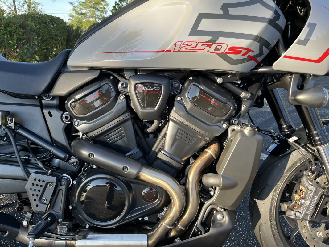 2025 Harley-Davidson Pan America 1250 ST Features may include: DESIGNLower Seat An all-new, one-piece seat lowers the rider's height for easier mounting and confident footing at stops. Its shape supports aggressive cornering while ensuring comfort and control. Front Fender Street-style lower fender hugs the Michelin Scorcher Sport tire for a sleeker, more aerodynamic design. Blacked-Out Styling From the lightweight muffler to the front cylinder, the blacked-out powertrain is raw and aggressive, but also subtle and understated. PERFORMANCERevolution Max 1250 Engine The liquid-cooled Revolution Max 1250 has a broad powerband with 149 horsepower and 94 ft-lb of torque at its peak. Integrated into the chassis as a load-bearing element, this engine not only shaves off weight but also improves rigidity for a more responsive ride. Wheels The 17-inch cast-aluminum wheels are built for fast handling and come stock with Michelin Scorcher Sport tires, boosting your street performance for sharper, more responsive rides. Adaptive Ride Height Standard on North American models, Adaptive Ride Height (ARH) drops up to one inch in a stopped position, allowing you to mount or dismount the Pan America 1250 ST with ease and confidence. Suspension Lowered suspension drops the center of gravity and eliminates unneeded ground clearance for optimal road performance. SHOWA Balance Free 47mm forks and a SHOWA Balance Free monoshock feature electronically adjustable pre-load and manually adjustable compression and rebound. Brakes Dual front Brembo Monoblock radially mounted four-piston calipers and hub-mounted 320mm brake rotors provide incredible stopping power with direct lever feel, while trailing in the rear are a single-piston Brembo caliper and 280mm rotor. Quickshifter Click through the gears, up and down, without clutching or worrying about damaging your transmission. Quick, smooth shifts are achieved with little more than a tap of the foot, optimizing acceleration and keeping your focus on the road.