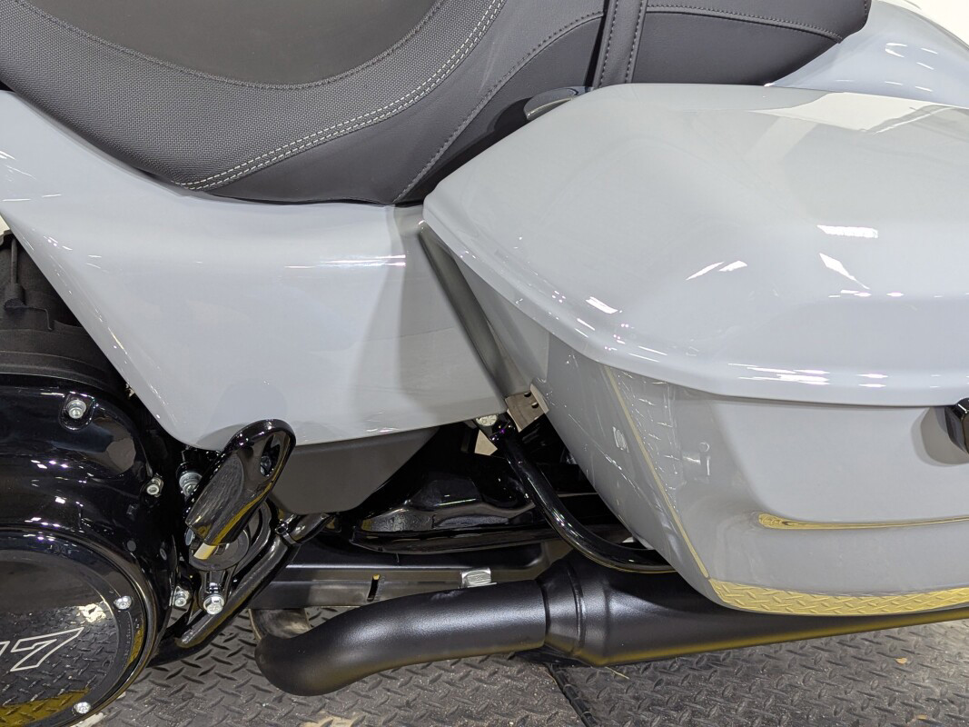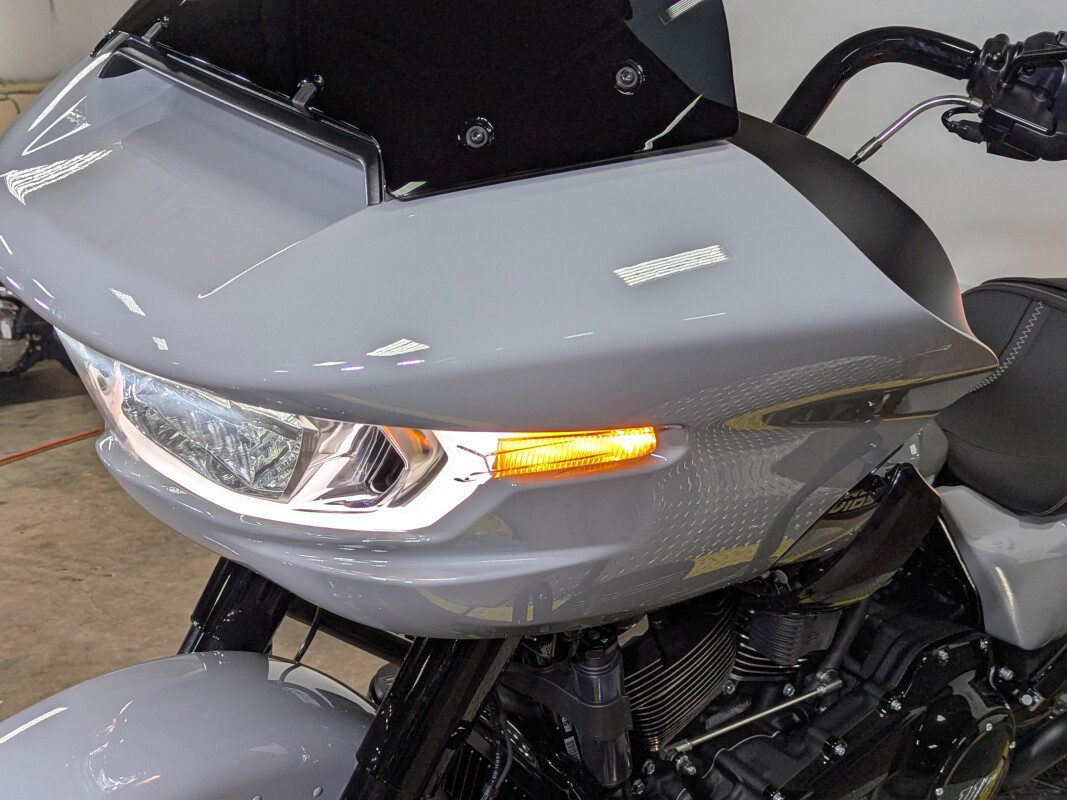 The Road Glide has an aerodynamic Sharknose fairing and a liquid-cooled Milwaukee-Eight 117 engine that produces 130 ft-lb of torque, while reduced weight makes handling more responsive. With customizable ride modes, Bluetooth connectivity, and a 12.3-inch touchscreen display, the Road Glide offers a refined mix of tech, style, and power.