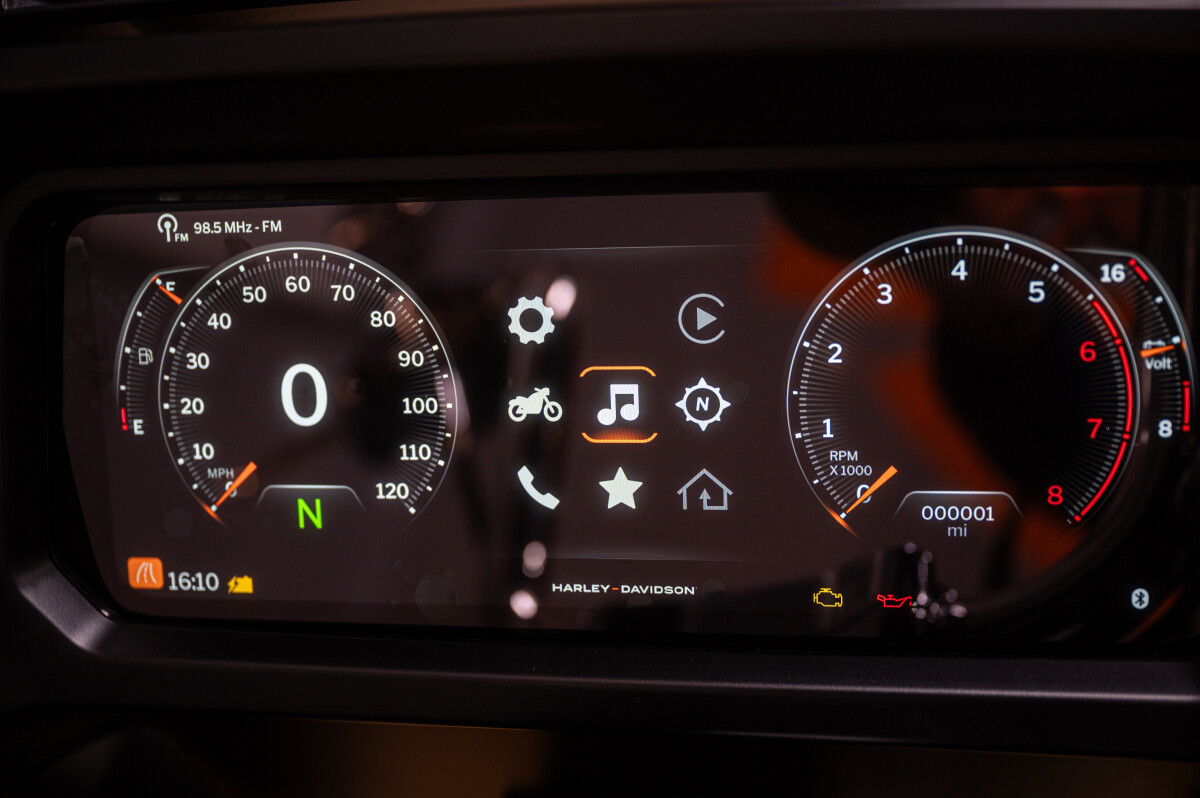 The Road Glide has an aerodynamic Sharknose fairing and a liquid-cooled Milwaukee-Eight 117 engine that produces 130 ft-lb of torque, while reduced weight makes handling more responsive. With customizable ride modes, Bluetooth connectivity, and a 12.3-inch touchscreen display, the Road Glide offers a refined mix of tech, style, and power.