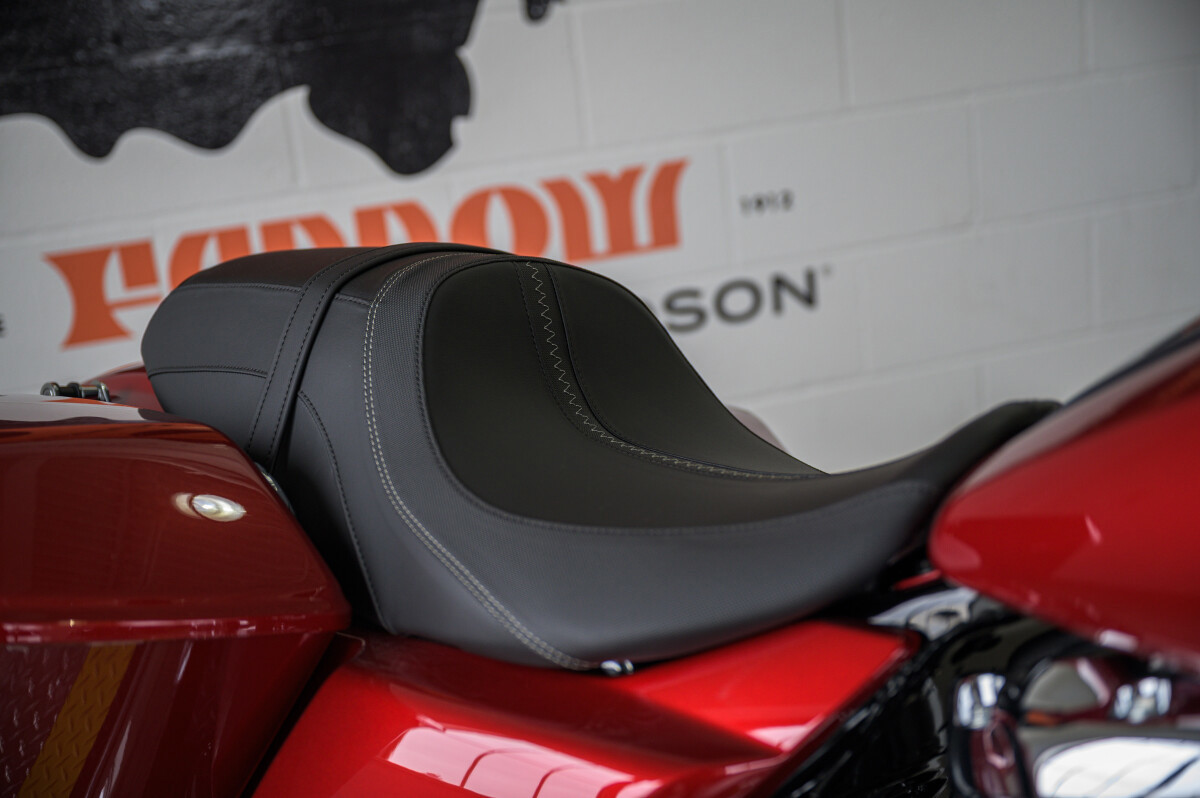 The Road Glide has an aerodynamic Sharknose fairing and a liquid-cooled Milwaukee-Eight 117 engine that produces 130 ft-lb of torque, while reduced weight makes handling more responsive. With customizable ride modes, Bluetooth connectivity, and a 12.3-inch touchscreen display, the Road Glide offers a refined mix of tech, style, and power.