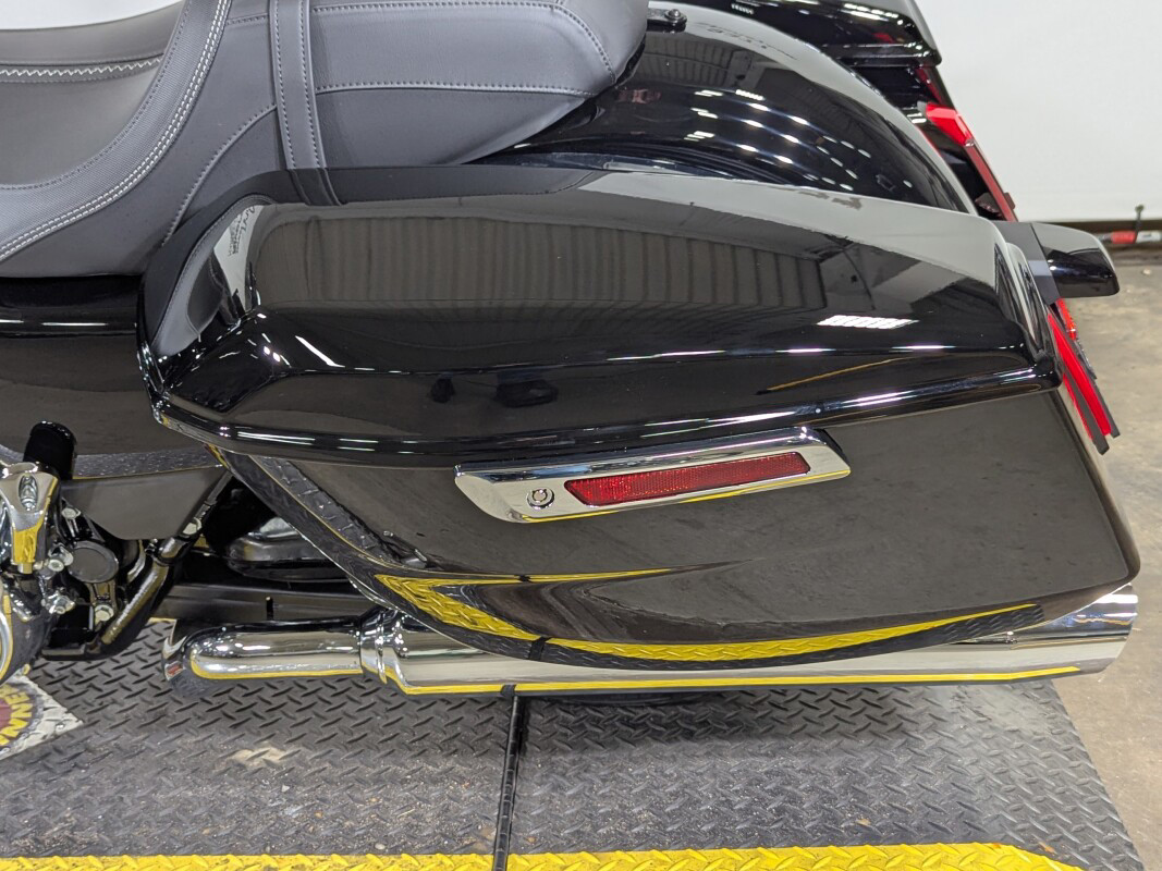 The Road Glide has an aerodynamic Sharknose fairing and a liquid-cooled Milwaukee-Eight 117 engine that produces 130 ft-lb of torque, while reduced weight makes handling more responsive. With customizable ride modes, Bluetooth connectivity, and a 12.3-inch touchscreen display, the Road Glide offers a refined mix of tech, style, and power.