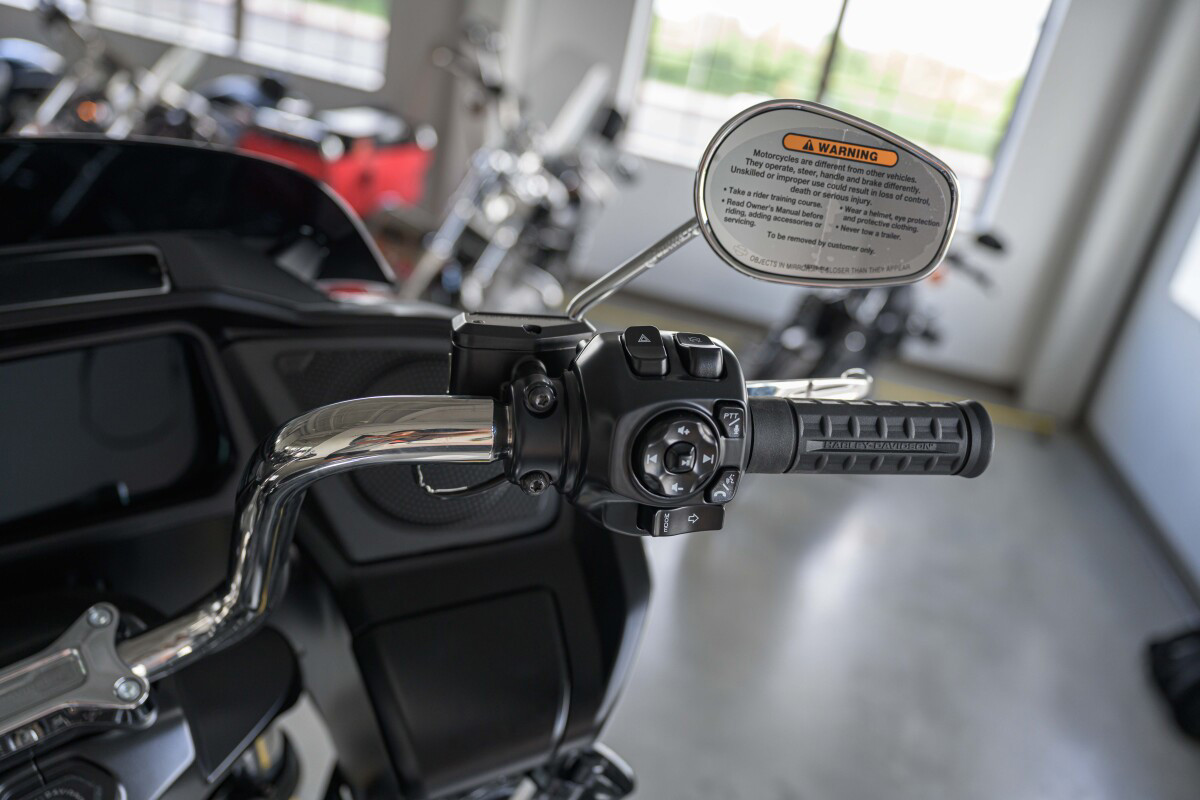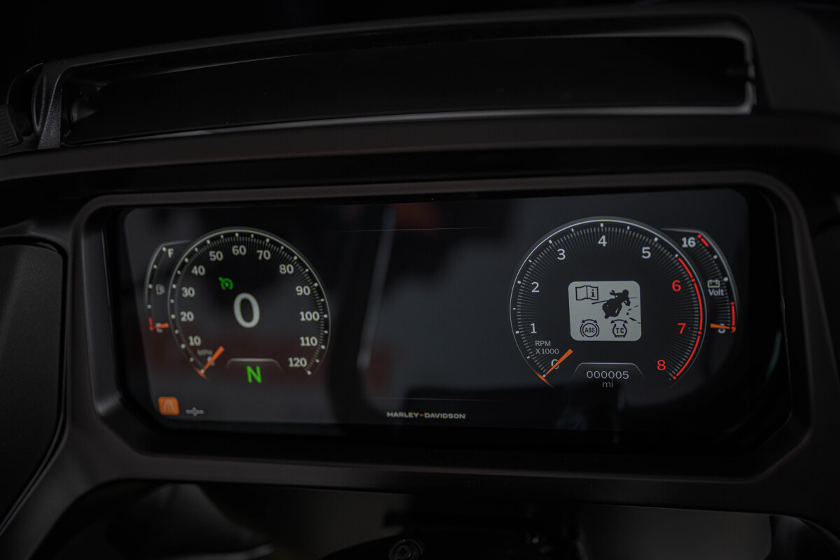 The Road Glide has an aerodynamic Sharknose fairing and a liquid-cooled Milwaukee-Eight 117 engine that produces 130 ft-lb of torque, while reduced weight makes handling more responsive. With customizable ride modes, Bluetooth connectivity, and a 12.3-inch touchscreen display, the Road Glide offers a refined mix of tech, style, and power.