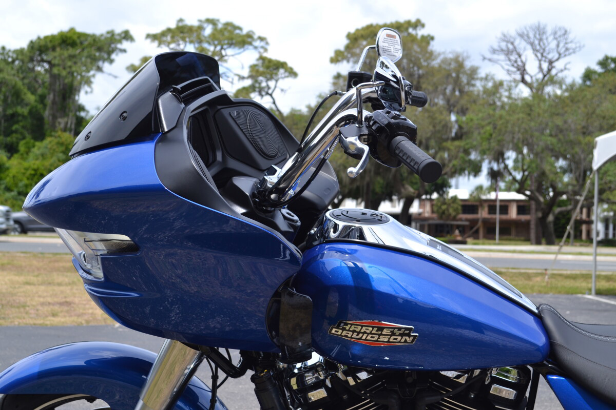The Road Glide has an aerodynamic Sharknose fairing and a liquid-cooled Milwaukee-Eight 117 engine that produces 130 ft-lb of torque, while reduced weight makes handling more responsive. With customizable ride modes, Bluetooth connectivity, and a 12.3-inch touchscreen display, the Road Glide offers a refined mix of tech, style, and power.