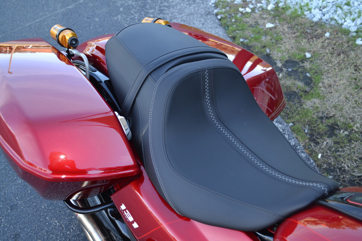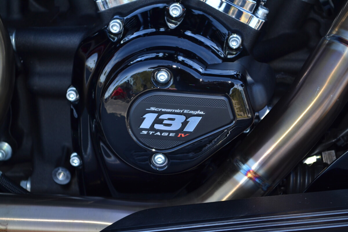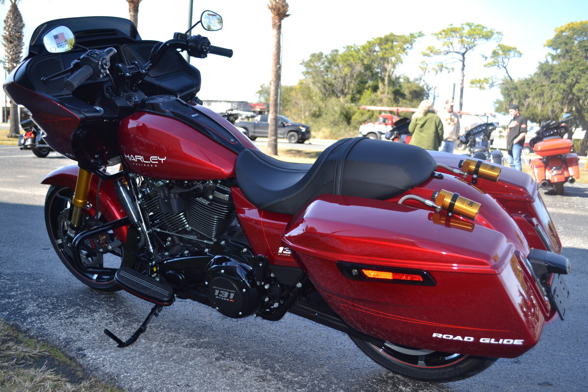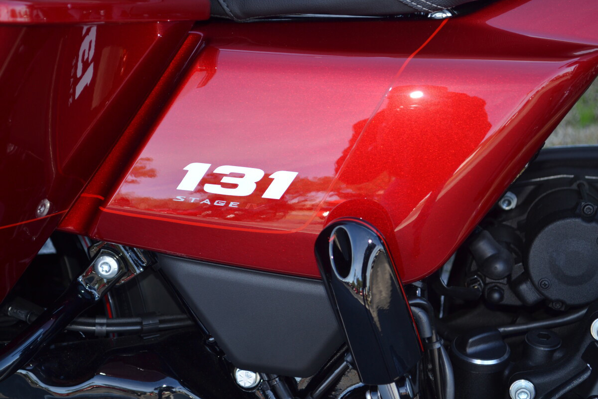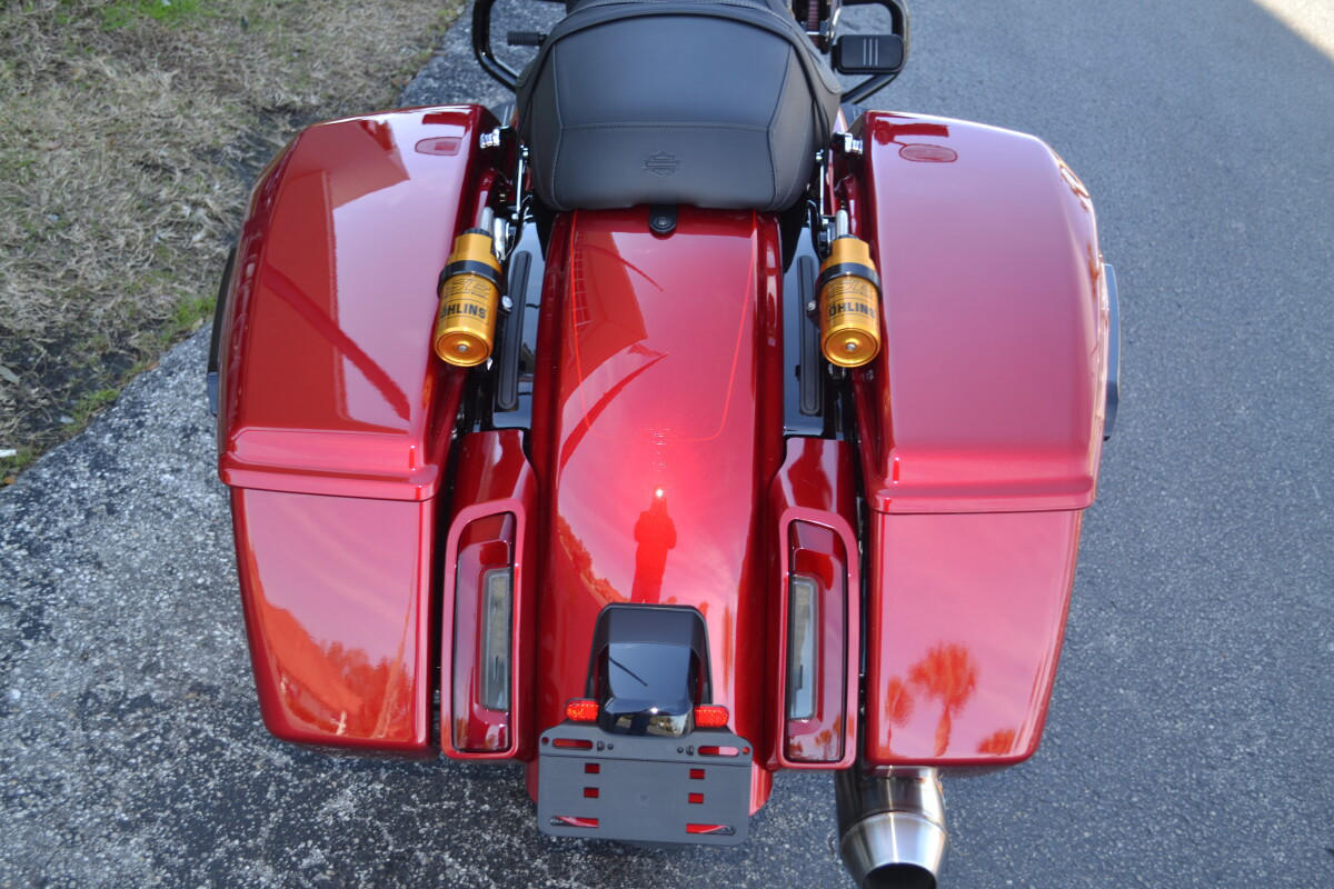 CUSTOM PINSTRIPING BY EL ROY!Screamin’ Eagle / Öhlins Inverted Gold Fork LegsScreamin' Eagle/Öhlins Remote Reservoir Gold Rear ShocksScreamin’ Eagle / Öhlins Inverted Fork Installation Kit – Road GlideScreamin’ Eagle Stage IV Kit - 117CI to 131CIScreamin' Eagle Air Cleaner - Extreme WedgeScreamin' Eagle Pro Street TunerScreamin' Eagle 131 Derby CoverSP Concepts Turnpike 2-into-1 Stainless ExhaustH-D Performance Front Brake RotorsH-D 6 Handlebar RiserH-D Touring Moto Handlebars