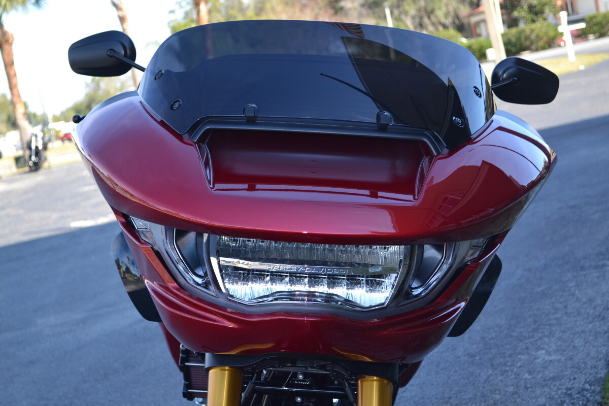 The Road Glide has an aerodynamic Sharknose fairing and a liquid-cooled Milwaukee-Eight 117 engine that produces 130 ft-lb of torque, while reduced weight makes handling more responsive. With customizable ride modes, Bluetooth connectivity, and a 12.3-inch touchscreen display, the Road Glide offers a refined mix of tech, style, and power.