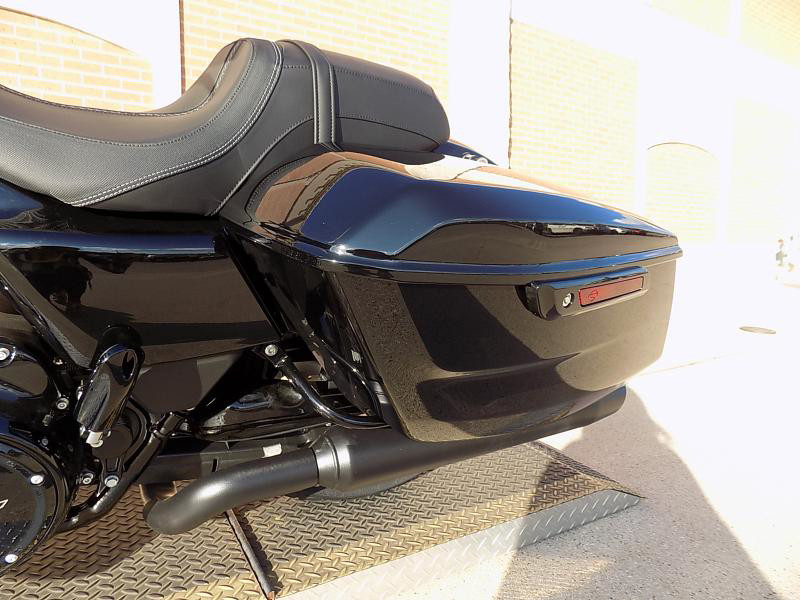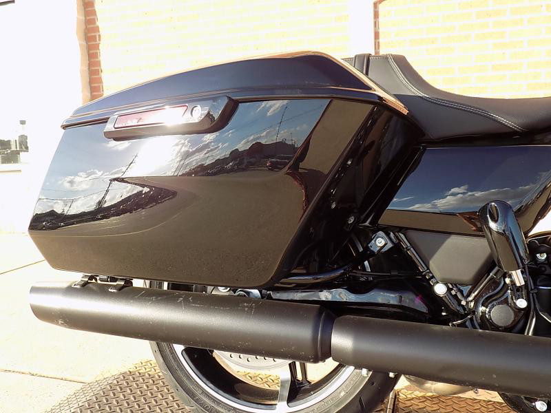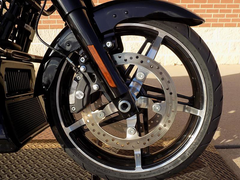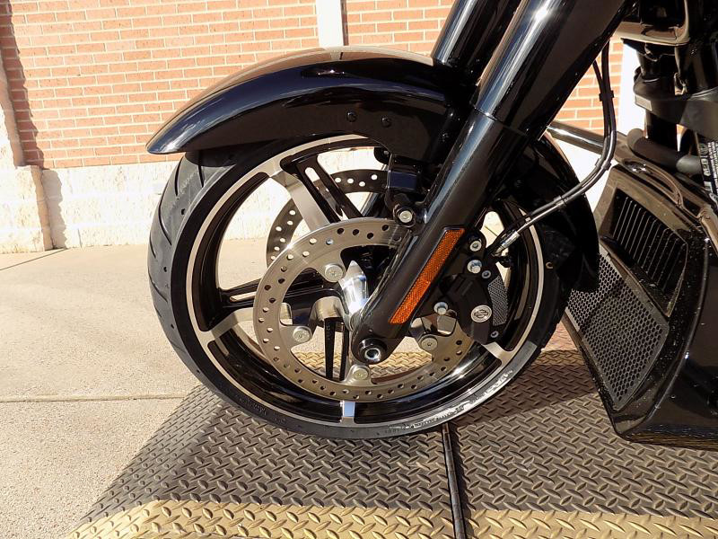 The exterior of the Road Glide Touring is finished in a sleek Vivid Black color, exuding a sense of elegance and authority. The bold and aggressive stance of the bike is complemented by its aerodynamic design, which not only enhances its visual appeal but also improves its performance on the road. The black, 5-spoke cast wheels add a touch of sophistication and ensure a smooth ride, while the iconic Harley-Davidson badge proudly adorns the body, symbolizing a legacy of excellence.