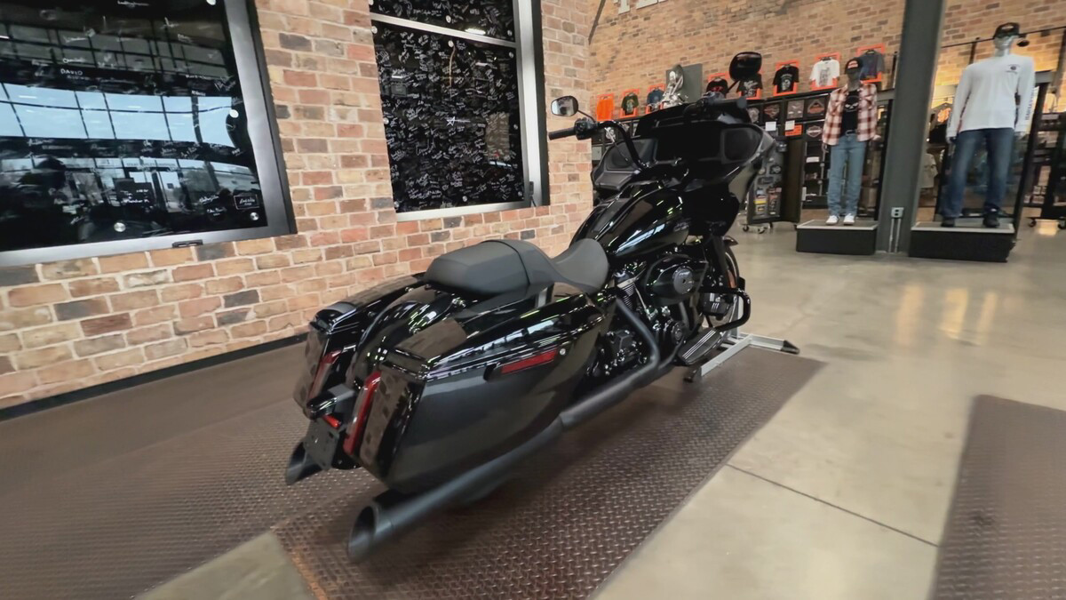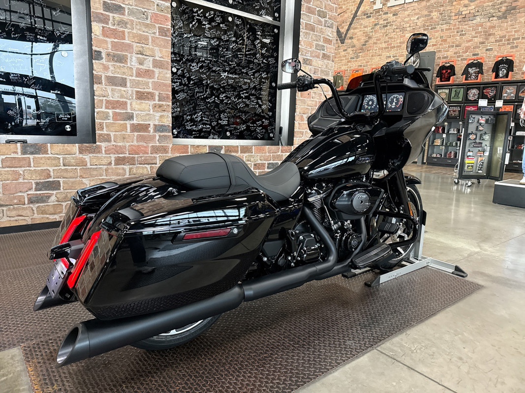 For those long-haul adventures, the Road Glide is equipped with spacious hard saddlebags, offering ample storage for all your touring needs. This thoughtful design element ensures nothing stands between you and the open road.