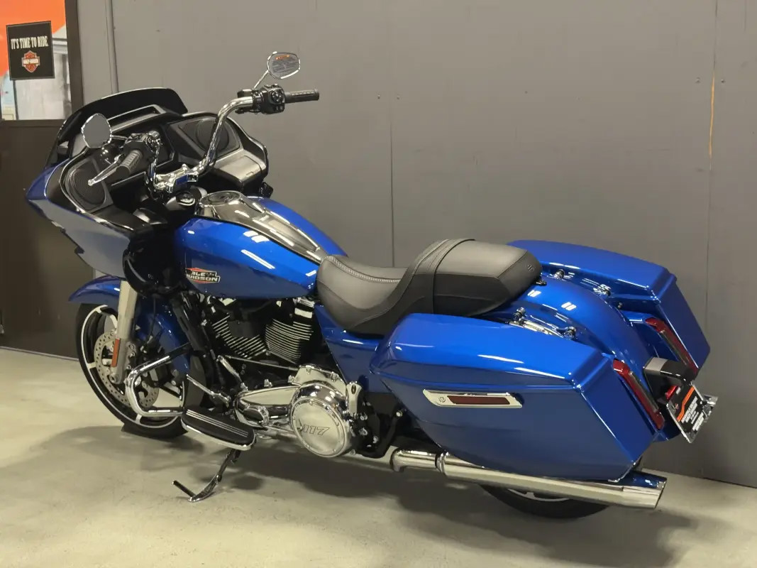 The Road Glide has an aerodynamic Sharknose fairing and a liquid-cooled Milwaukee-Eight 117 engine that produces 130 ft-lb of torque, while reduced weight makes handling more responsive. With customizable ride modes, Bluetooth connectivity, and a 12.3-inch touchscreen display, the Road Glide offers a refined mix of tech, style, and power.