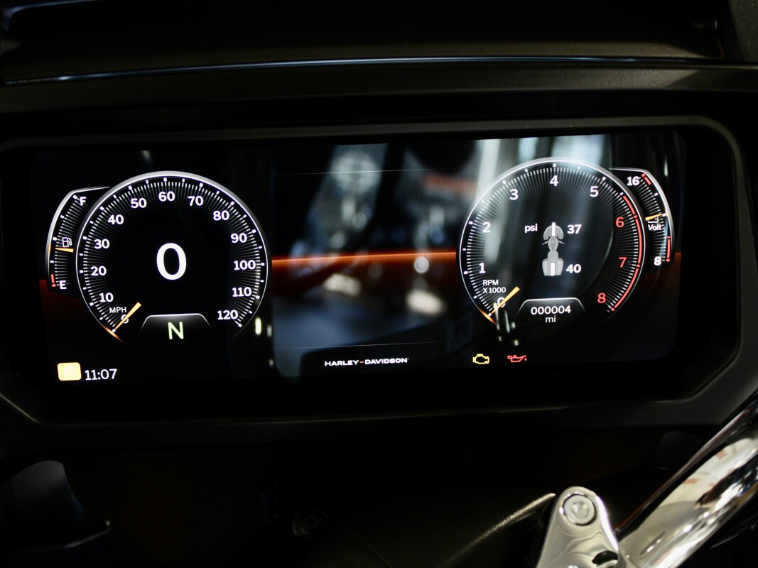The Road Glide has an aerodynamic Sharknose fairing and a liquid-cooled Milwaukee-Eight 117 engine that produces 130 ft-lb of torque, while reduced weight makes handling more responsive. With customizable ride modes, Bluetooth connectivity, and a 12.3-inch touchscreen display, the Road Glide offers a refined mix of tech, style, and power.